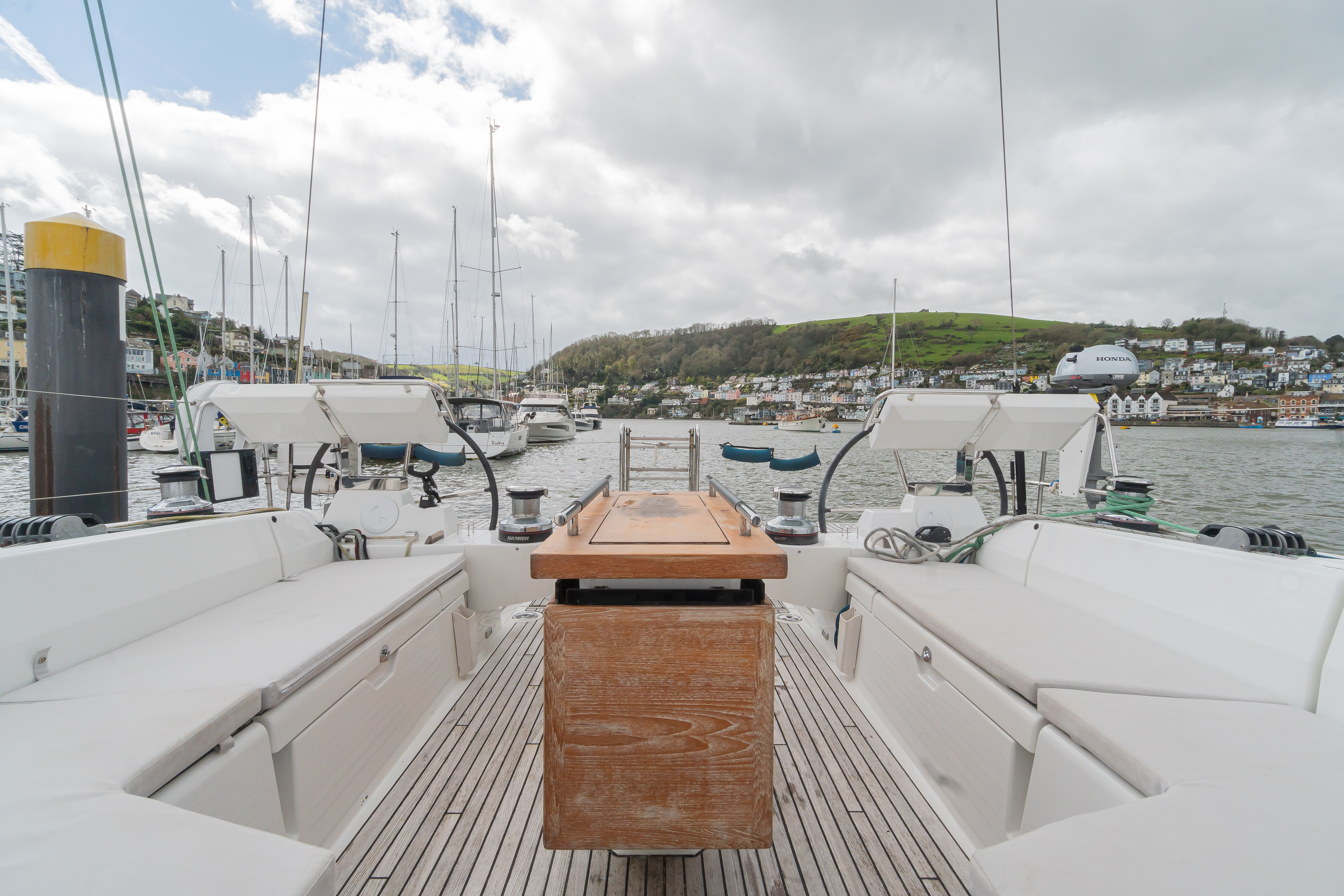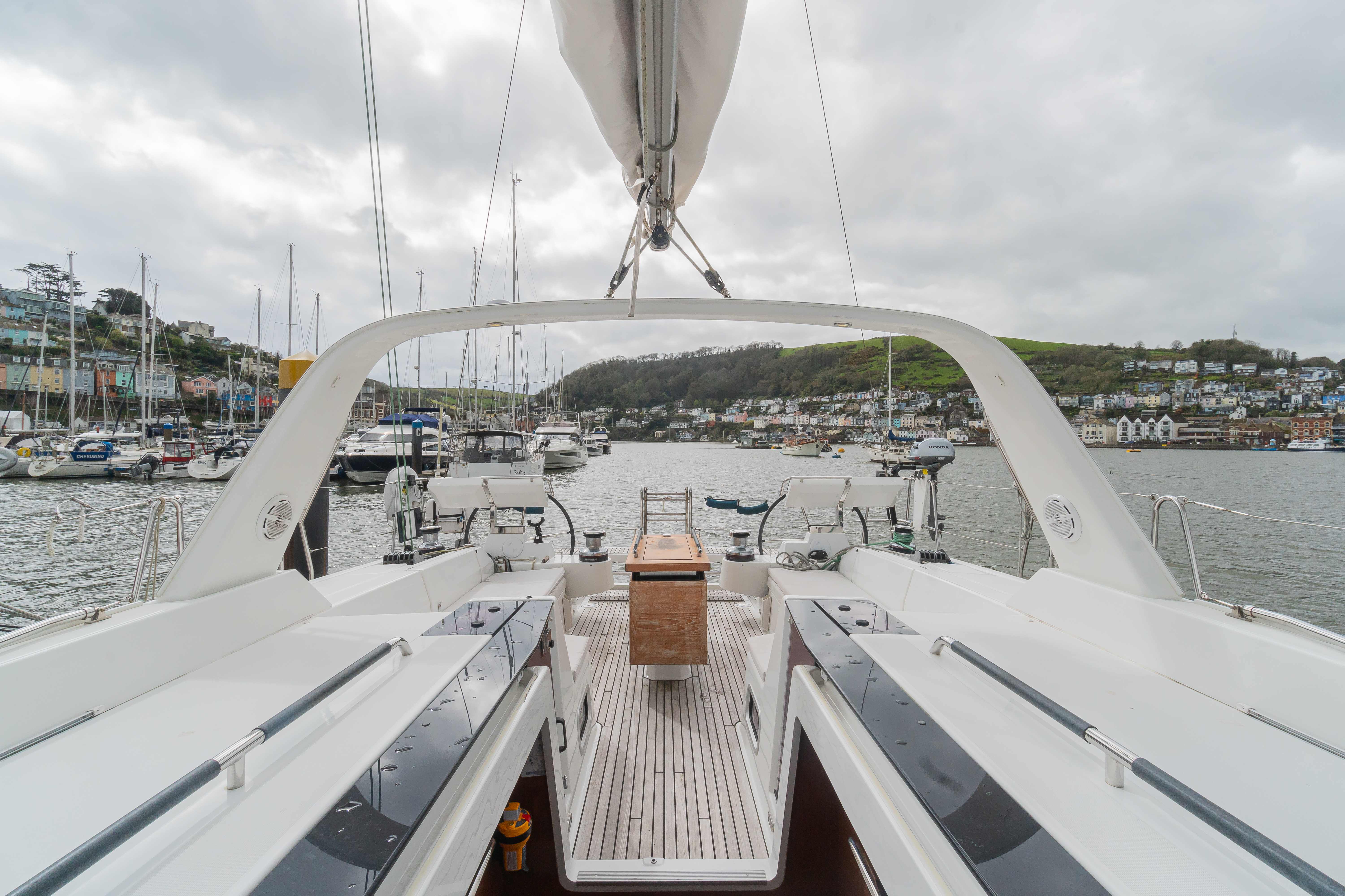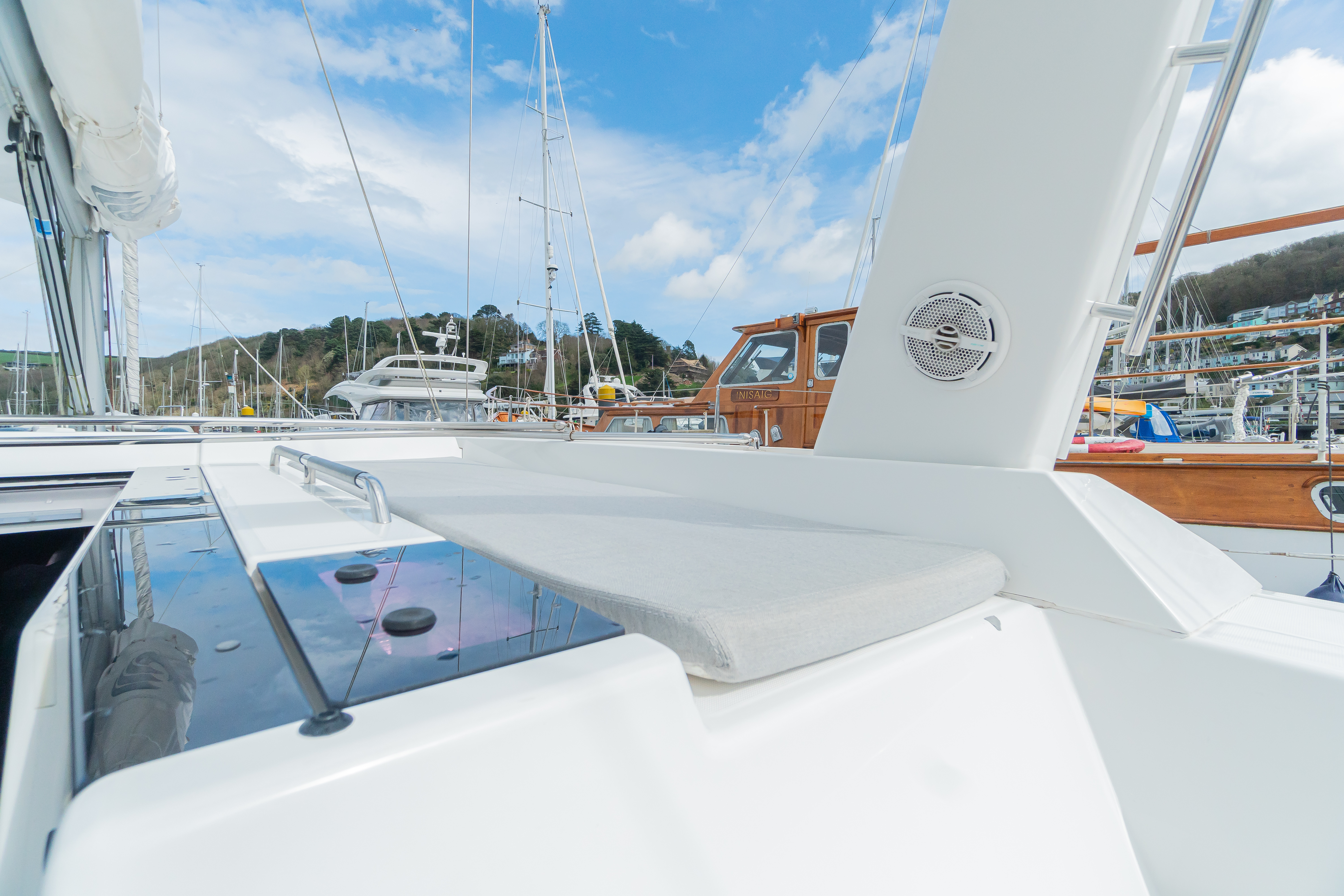 Teak laid to side decks, bathing platform, cockpit seats and sole