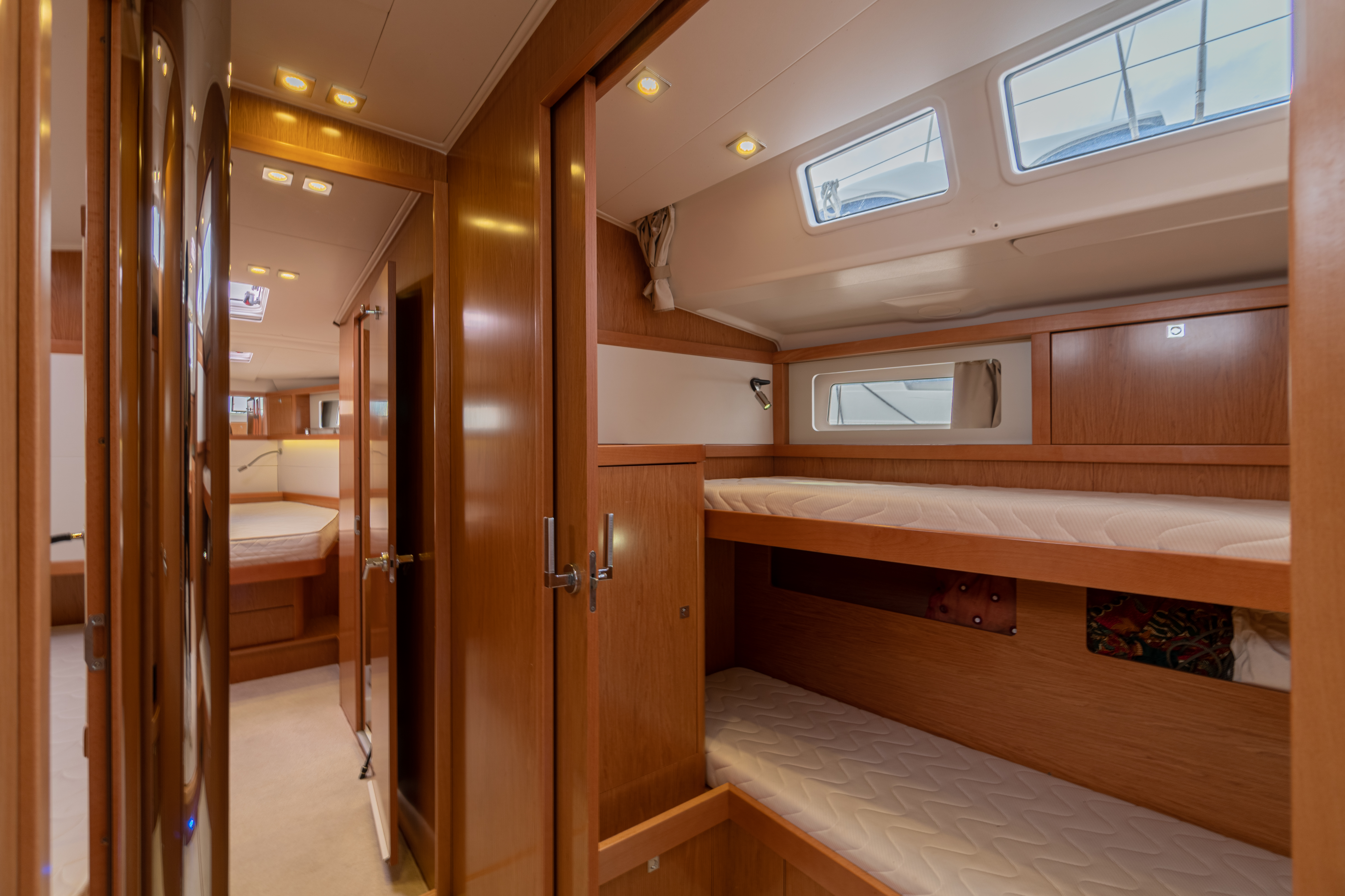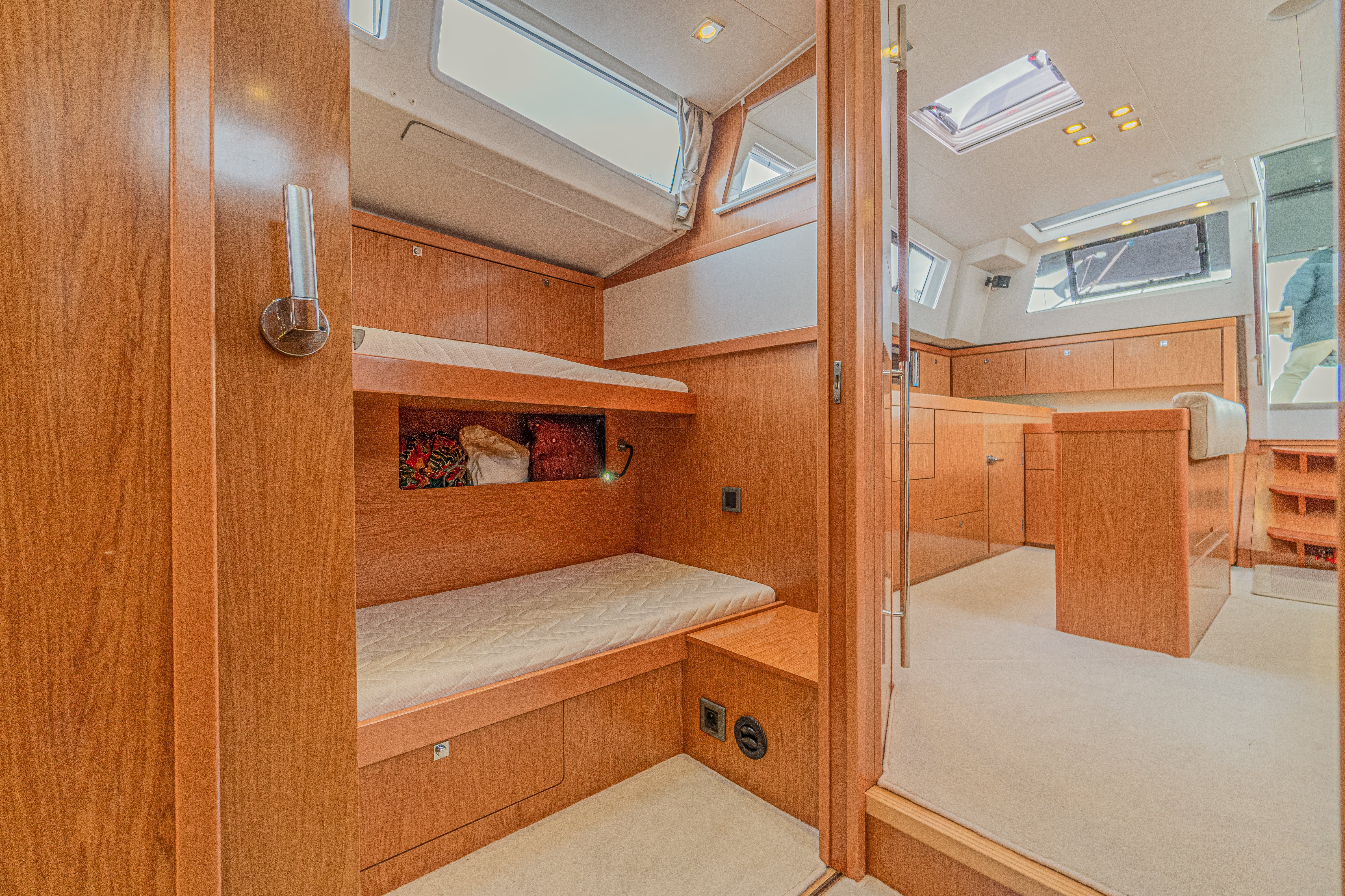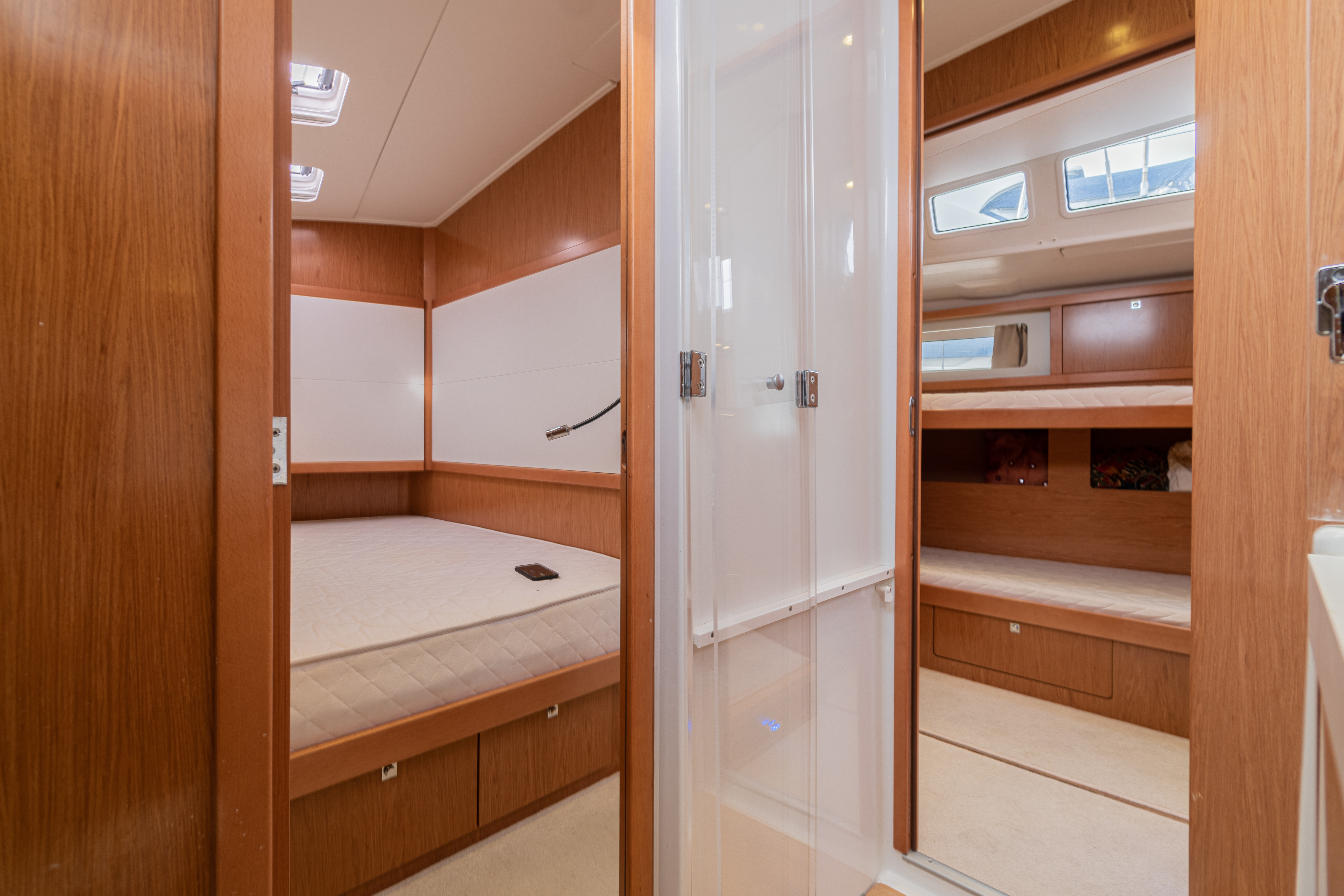 SLEEPS NINE IN TWO DOUBLE CABINS PLUS ONE TWIN BUNK BERTH (PLUS TWO IN SALOON DBL BERTH CONVERSIONAND ONE IN SKIPPER CABIN)