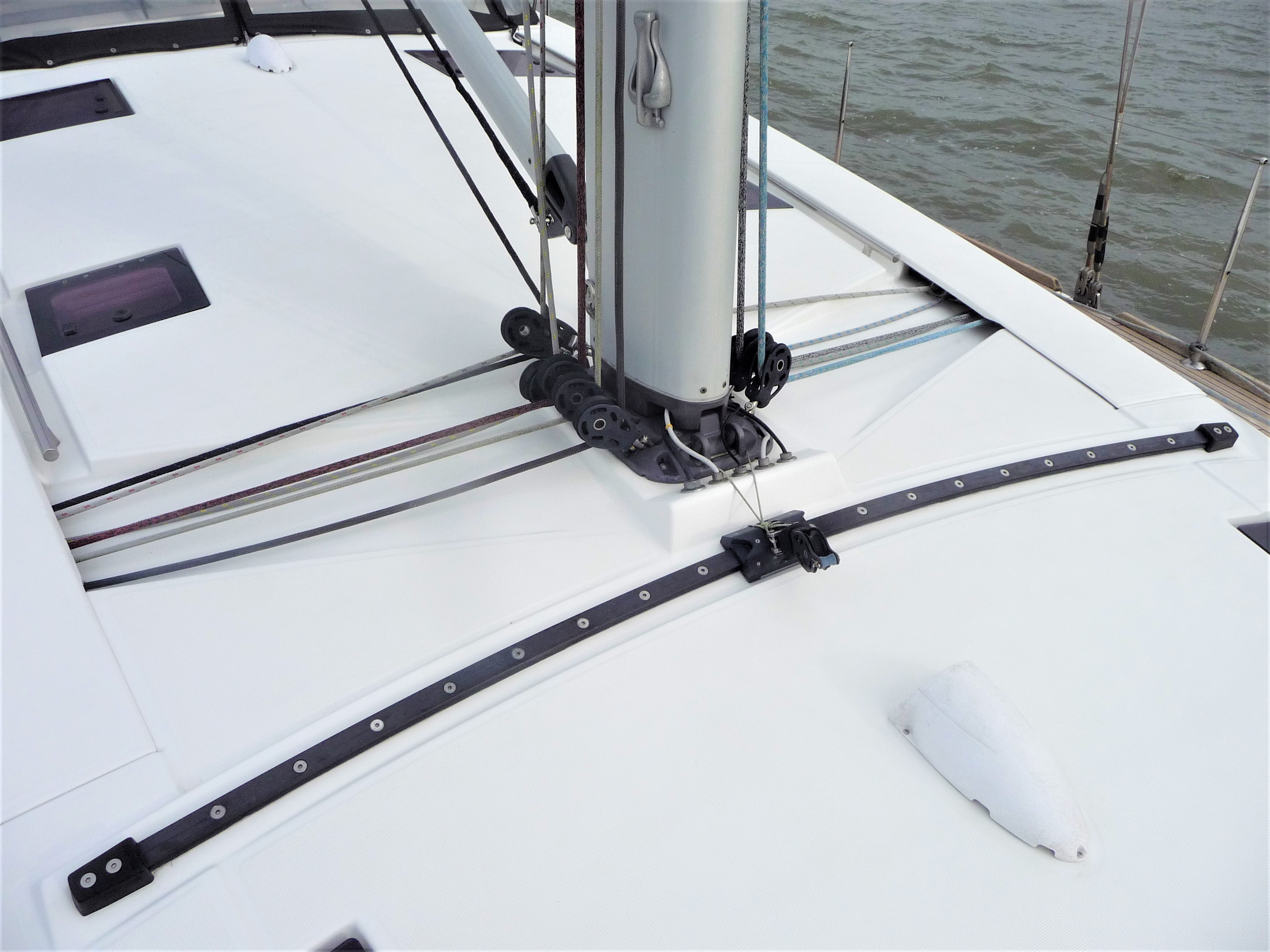 • Standard mast SELDEN 9/10 electro-polished aluminium installed on the deck, 2 levels of advanced cross trees - MDS roller slides