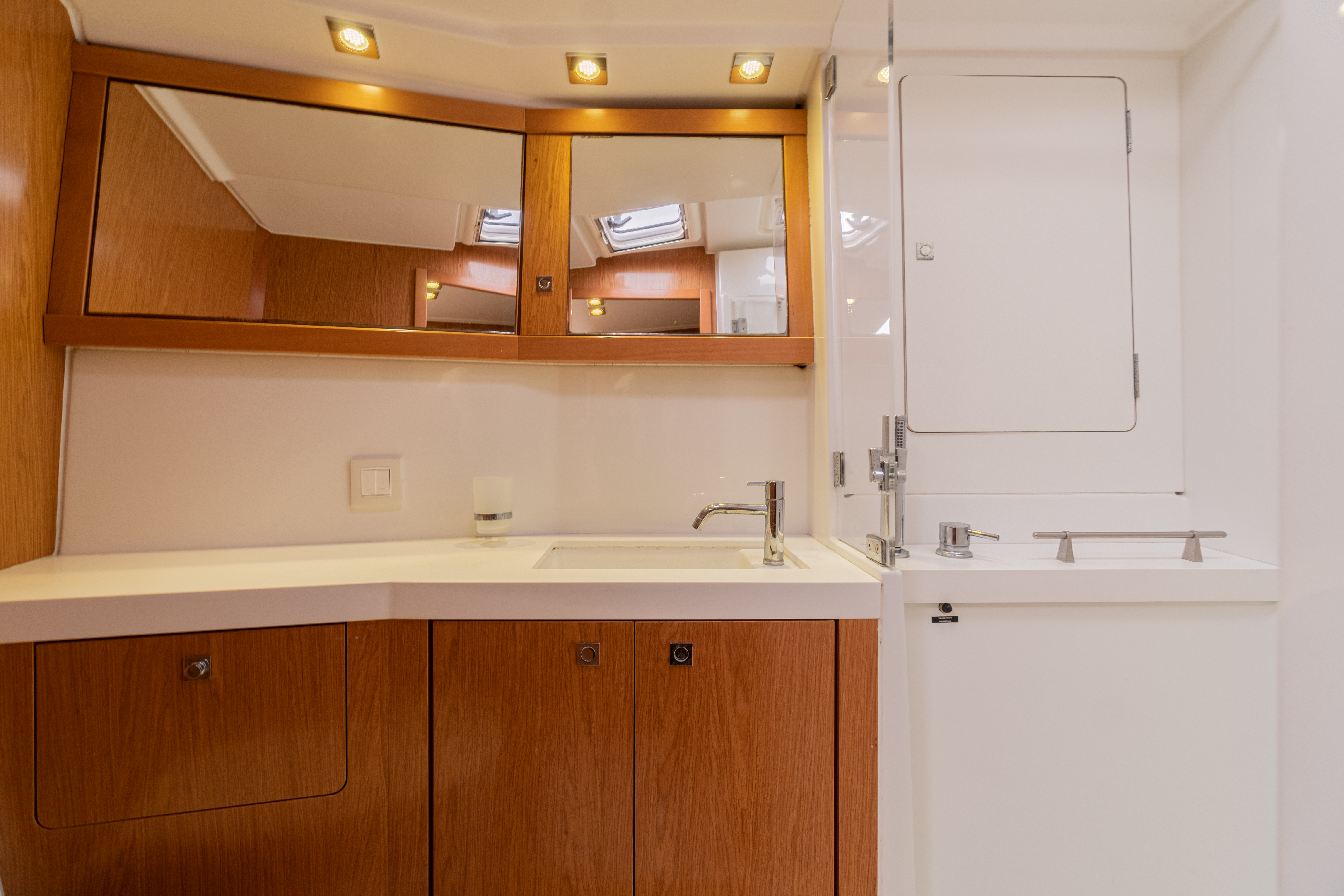 Couple this wonderful innovation with her air con, gen, electric winches and many luxury upgrades (including leather saloon upholstery and luxury fitted carpets) and you have the perfect embodiment of a performance cruiser.