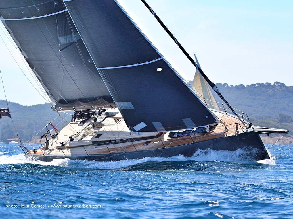 Press review - Toby Hodges – Yachting World – June 2015 “Match a spicy, aesthetics-led brand with a gifted designer and the result is this sensationally cool Black Pepper Code 2 60-footer. Although she may not offer the minimalist, go-anywhere prospect of a Django or Pogo, Black Pepper’s latest creation is still a fast lift-keel cruiser. And she has more than her fair share of sheer panache. Like the smaller yachts in the Black Pepper range, the Code 2 uses a traditional-style doghouse and teak decks blended with a very modern, beamy hull shape to arresting effect. The slight reverse sheer appeals particularly – this is fast becoming a signature look for designer Marc Lombard. Despite her high-end luxury daysailer appearance, Michel Douville de Franssu of Black Pepper Yachts thinks clients will be most interested in offshore racing. Black Pepper’s range is built in Nantes. The Code 2 is made in carbon epoxy sandwich and weighs around 10 tons. Her 4.6m lifting keel helps provide the deep draught needed to support minimum 410m2 of downwind sail area – plus there is 1,500lt of water ballast each side (the equivalent of having a rugby team on the rail). Like the other French designs shown, sheets are led to inboard winches, abaft the cockpit benches. So beamy is the Code 2 in the after sections that the central area between the rudder stocks lifts like the boot of a car to reveal a tender garage below. Below decks she looks every bit the luxury cruiser, including, notably, four heads.”