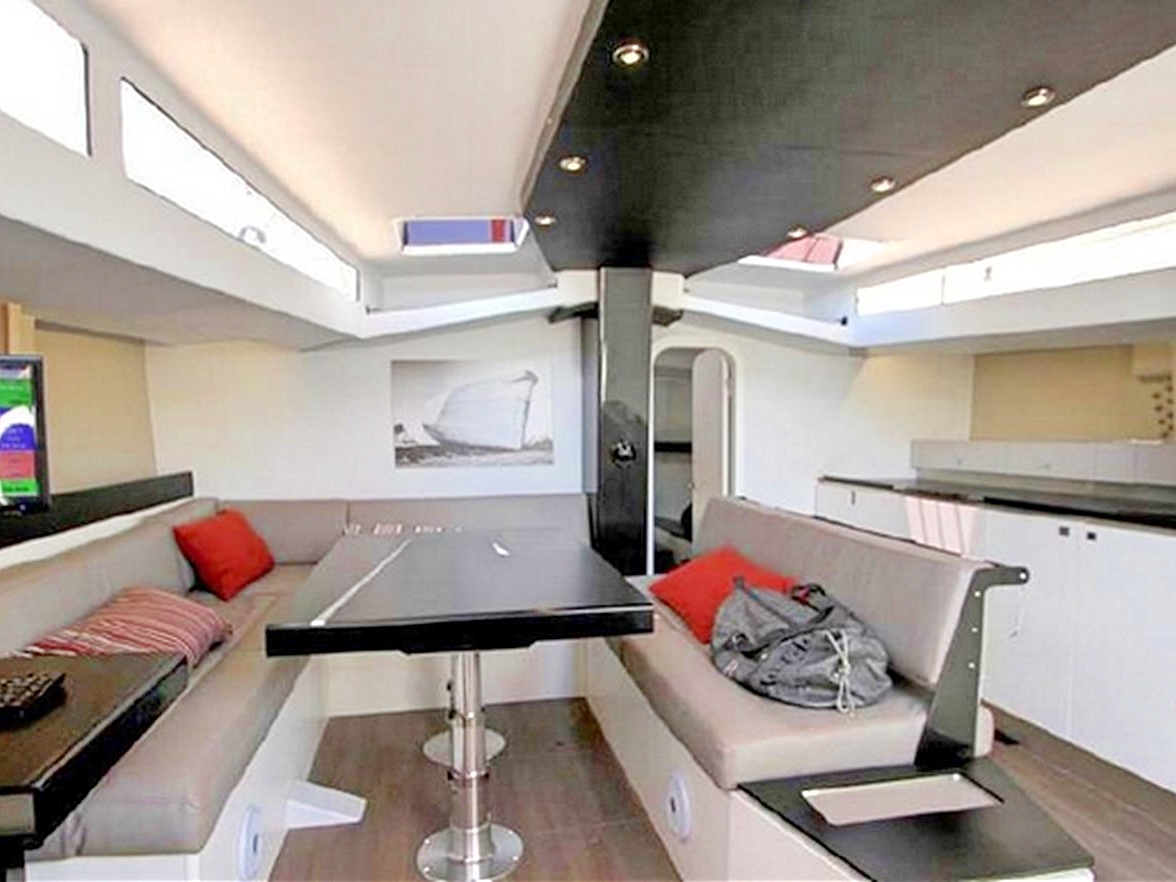• The interior can accommodate up to 8 guests in 2 double cabins forward, and 2 double guest cabins aft; a convertible saloon seating offering further occasional berth, plus separate forepeak with two crew berths.