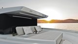 • Aft Sunbed & Engine Design: Outboard engines are discreetly hidden beneath a large sunbed that comfortably fits two, combining safety with sleek style.