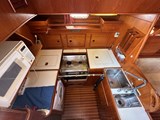 U-shaped galley to port with double sink unit, 2 x burner gas cooker with oven + 2 fridges including 1 freezer