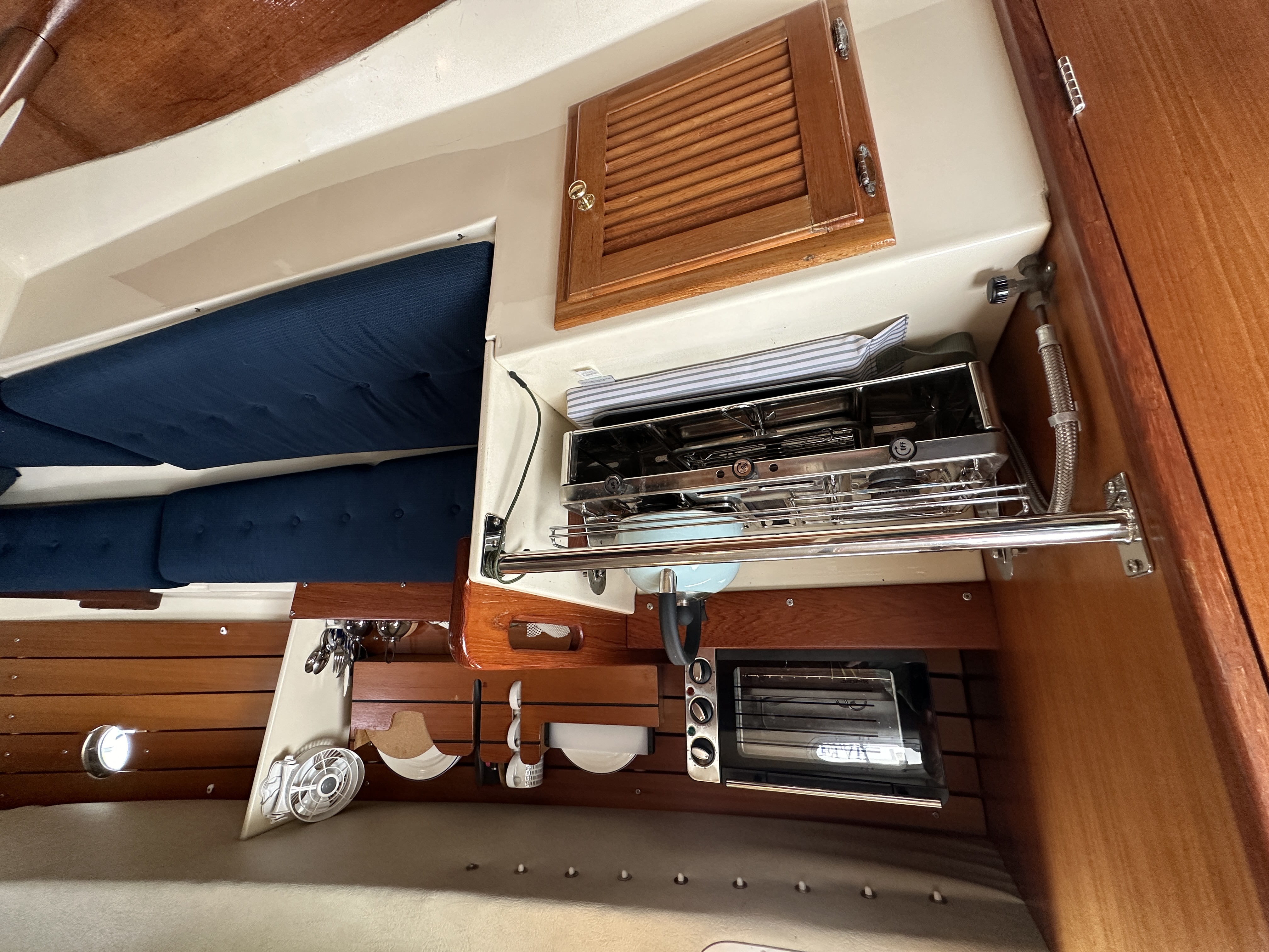 She sleeps 3, can be short handed sailing with her sloop rig and furling genoa.