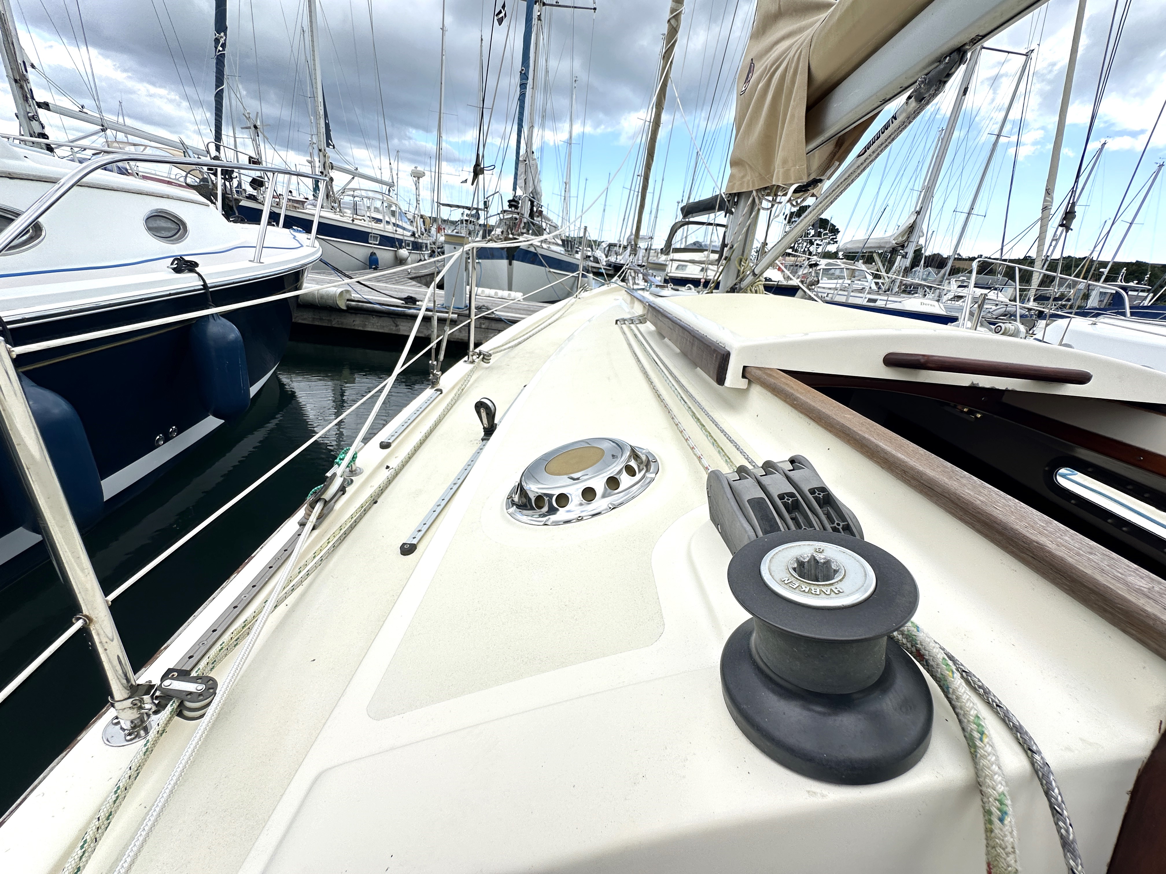 Standing rigging, running rigging, re finished interior, reupholstered, new winches, recent genoa, electric windless.... You will be hard pushed to find a better example.....