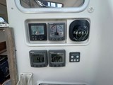 Helm and navigation area to starboard, aft of the saloon, with chart table, chart stowage, instrumentation and electrical switch panel, and helmsman's seat.