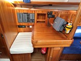 Good sized forward facing chart table is sited to port with dedicated seat and chart storage