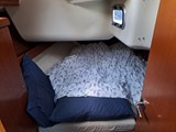 Forward cabin with double berth, wardrobe, shelving and reading lights