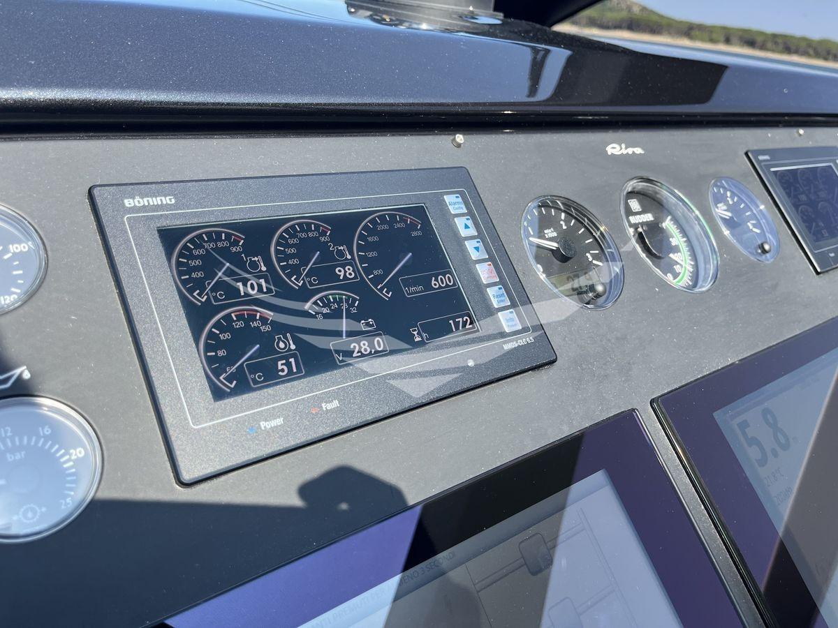 Computer di bordo (naviop), Ecoscandaglio (masters), GPS (masters), Pilota automatico (simrad), Radar (masters), Radio VHF (simrad).