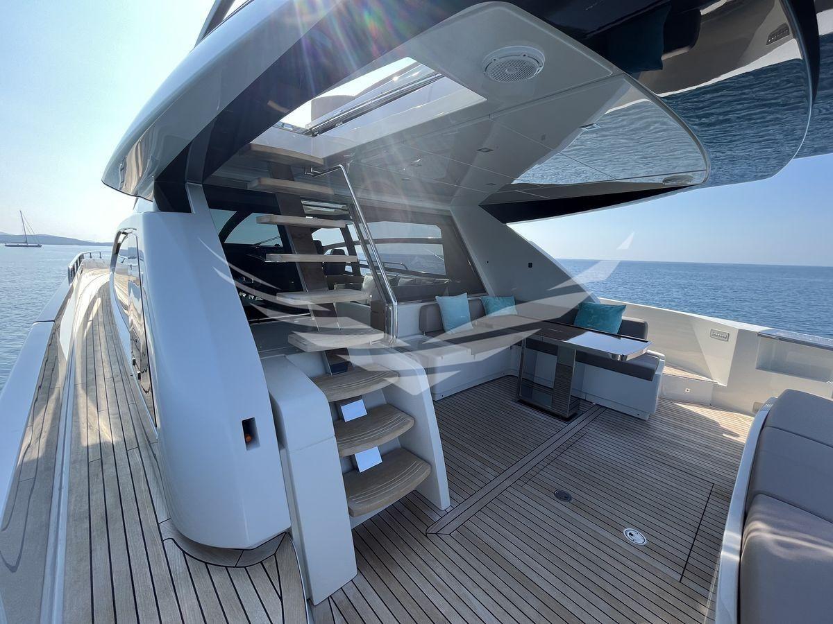 Le Riva Perseo 76 est un élégant Sport Fly, unique en son genre. Style, élégance et confort sont les caractéristiques qui la distinguent.