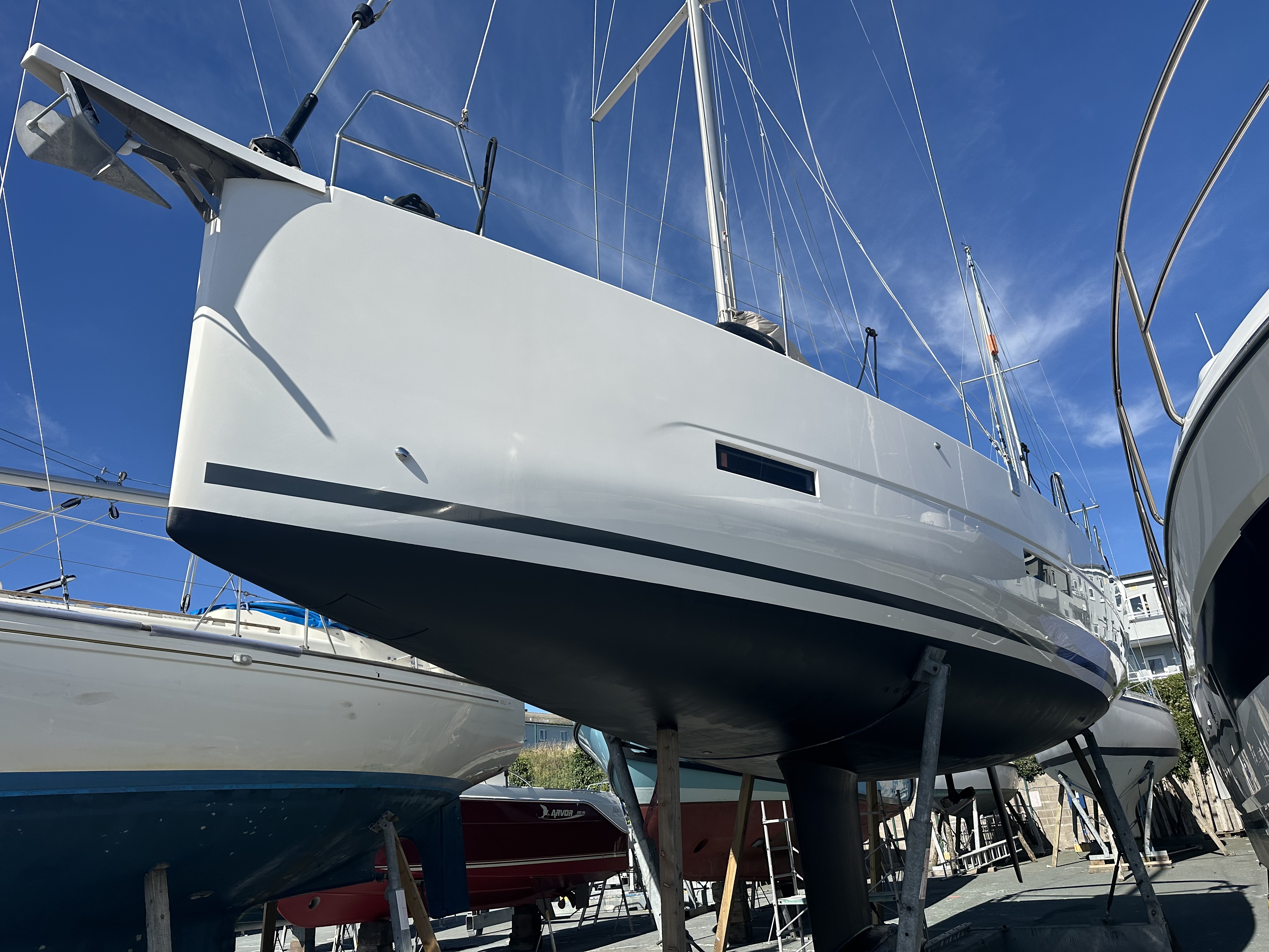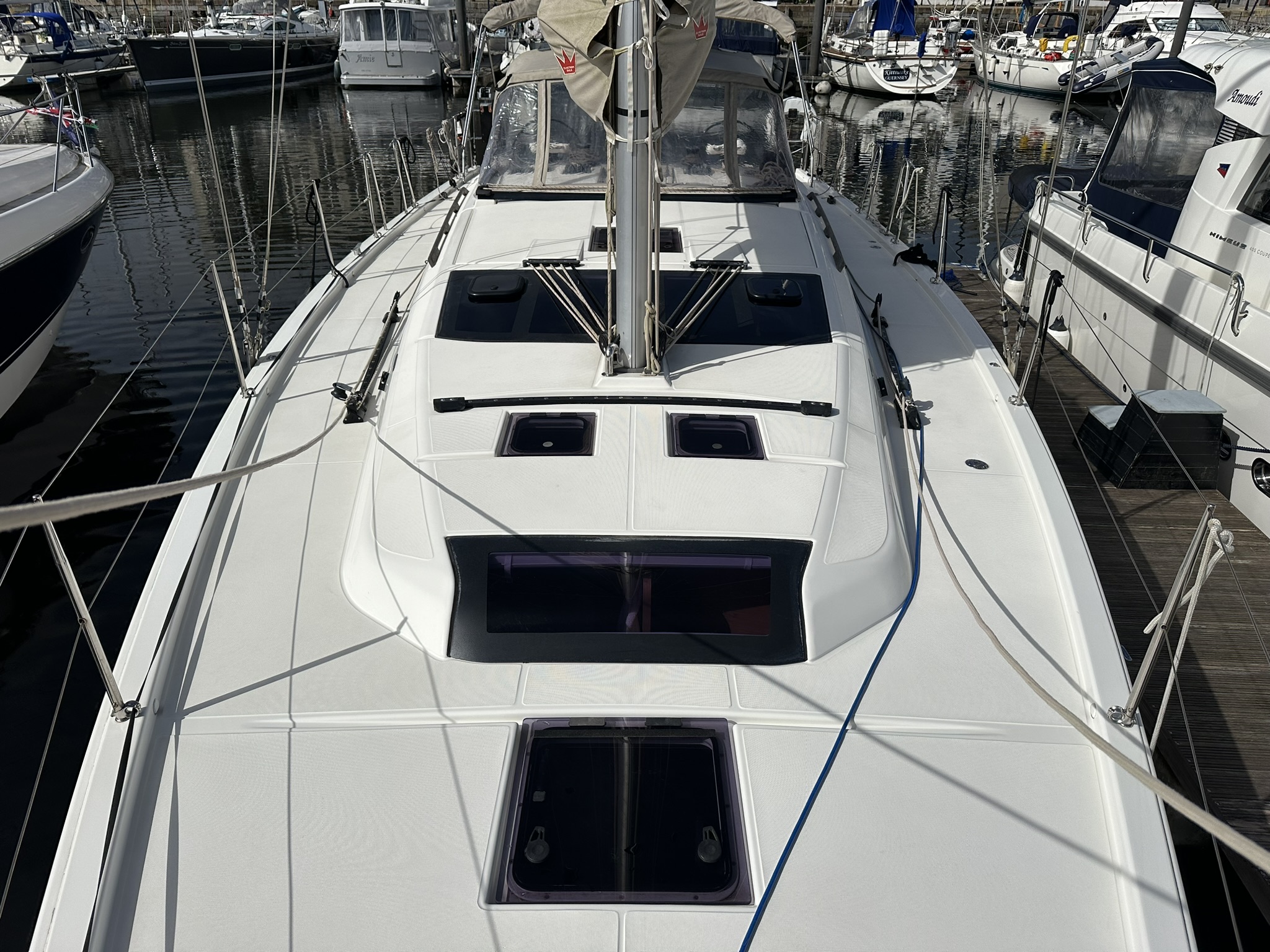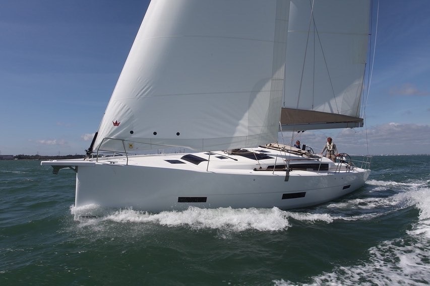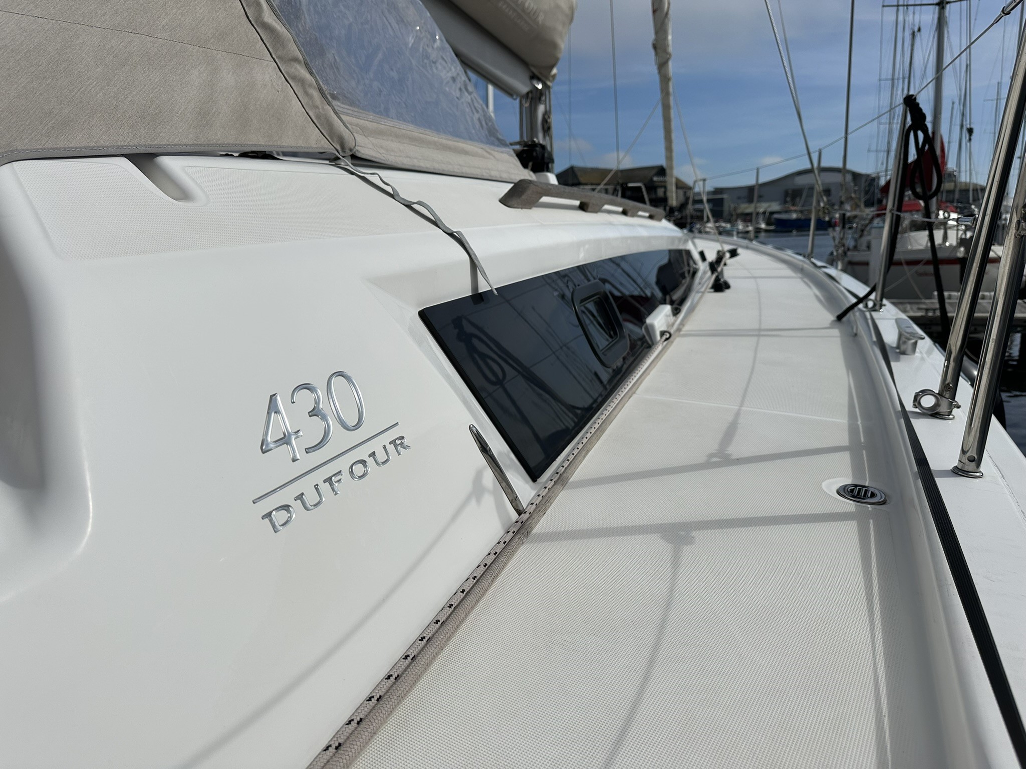 Dufour 430 Grand Large - Versatile and elegant high-performance cruiser offering an excellent balance of volume and seaworthiness. Modern high-comfort interior with three double cabins, two heads and forward positioned galley. Comprehensive spec including upgraded 60hp diesel engine (circa 190 hours), bow thruster, electrically operated transom, electric winch, cabin heating, integral cockpit BBQ/sink, bimini and Raymarine nav suite including Axiom chartplotter/GPS, Evolution autopilot and AIS. On the water in Plymouth and available to view.