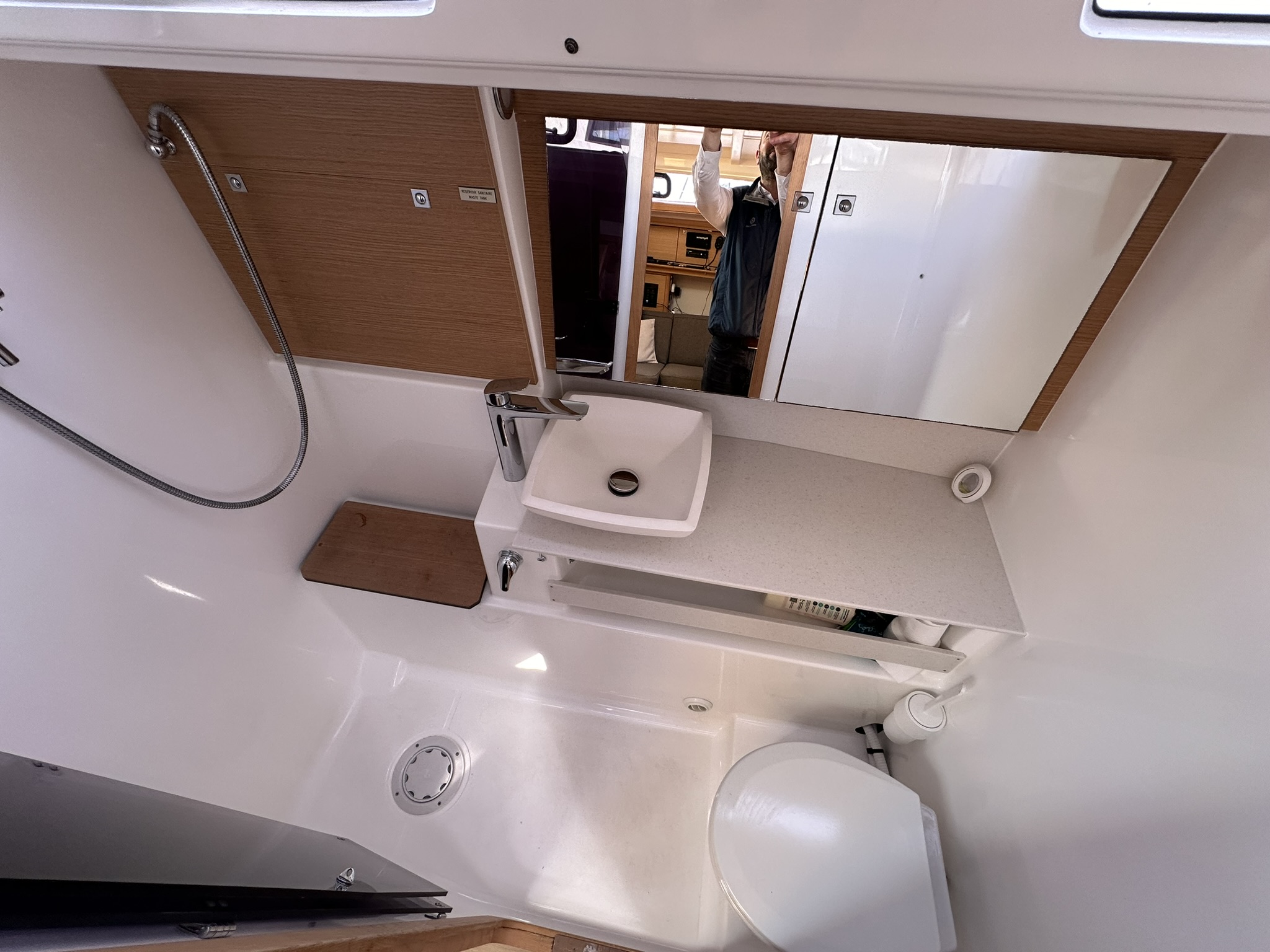 DAY HEADS - Electric WC, sink with mixer tap, shower with seat and automatic pump, mirror fronted vanity unit, opening portlight.