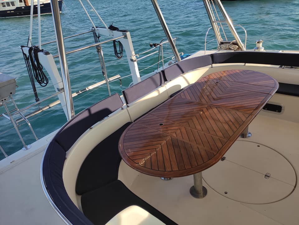 This Marquises 56 Australian registered, non vat paid. 3 owner, private history - chartered in name only she is in fantastic largely original condition. Blue water proven and ready to go, sailed by couple in carribean and across to eastern med. These boats are the last of the "coach" built yachts, not a plastic fantastic, incredibly solid and seaworthy. She's also has a custom built spectacular enormous hard top bimini.