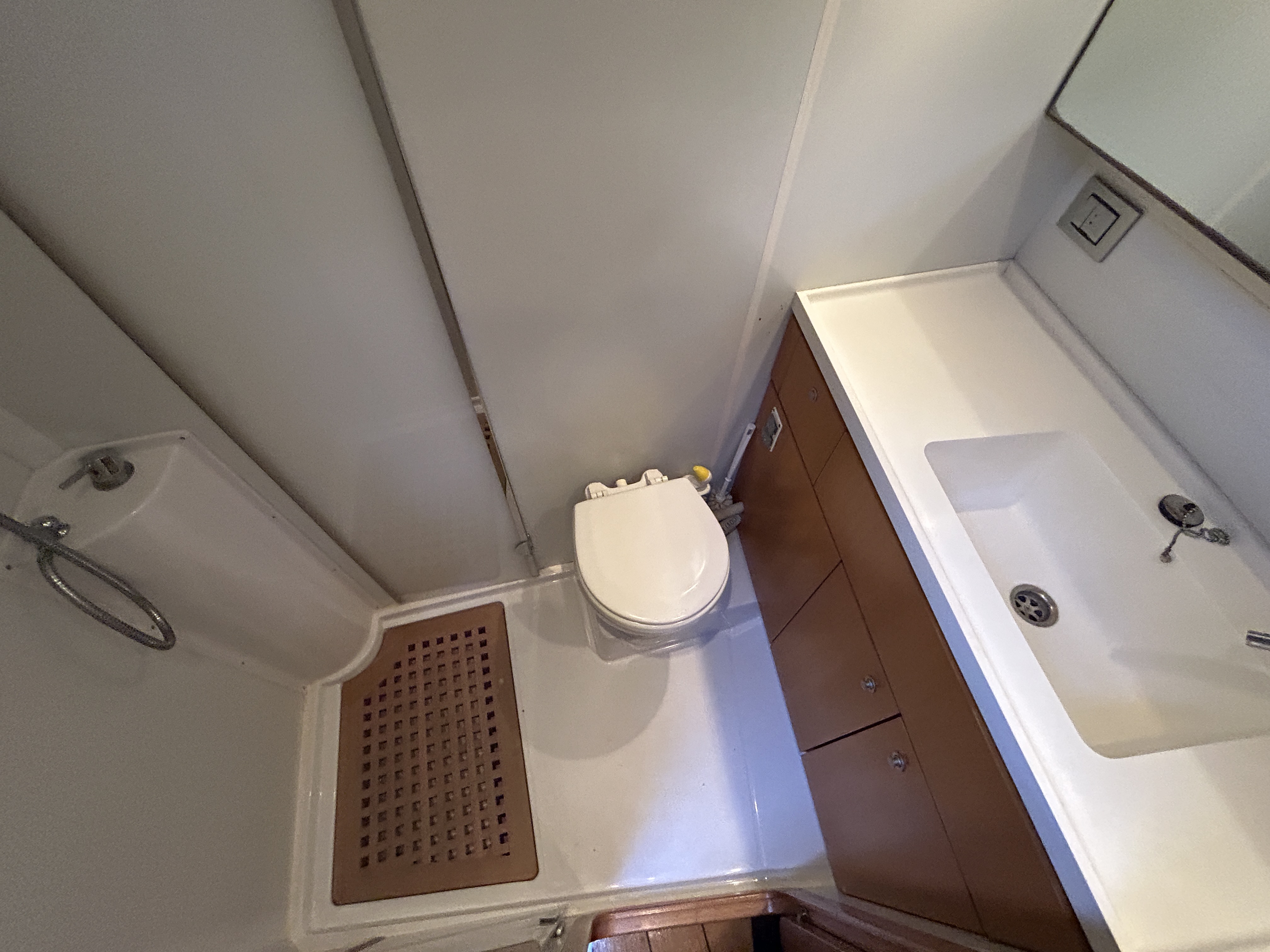 Toilettes: 1 électrique dans la salle de bain propriétaire, 1 manuel Jabsco à l’arrière