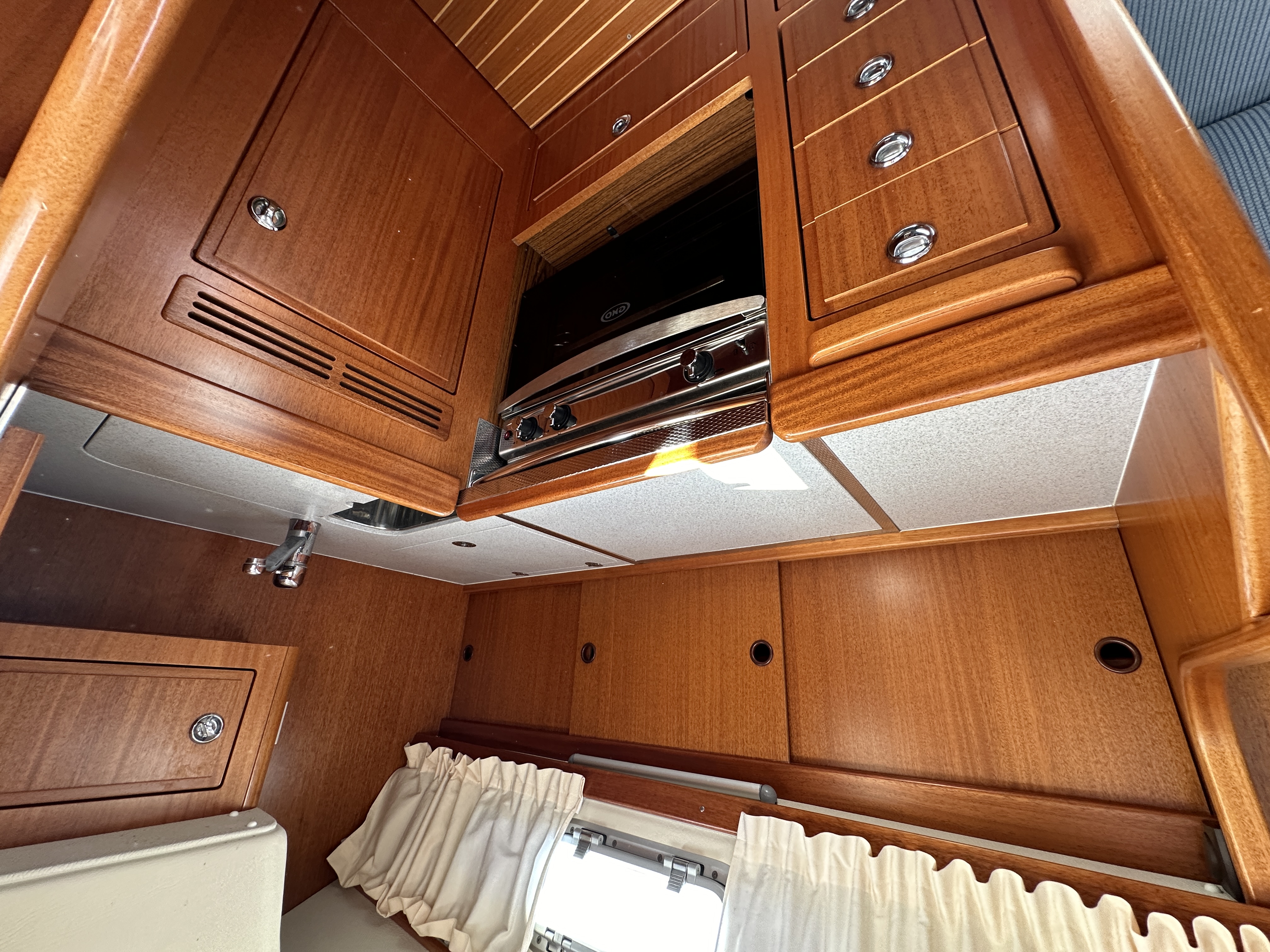 The boat is CE certified by Germanischer Lloyd and a CE plaque for category A (unlimited ocean voyages)