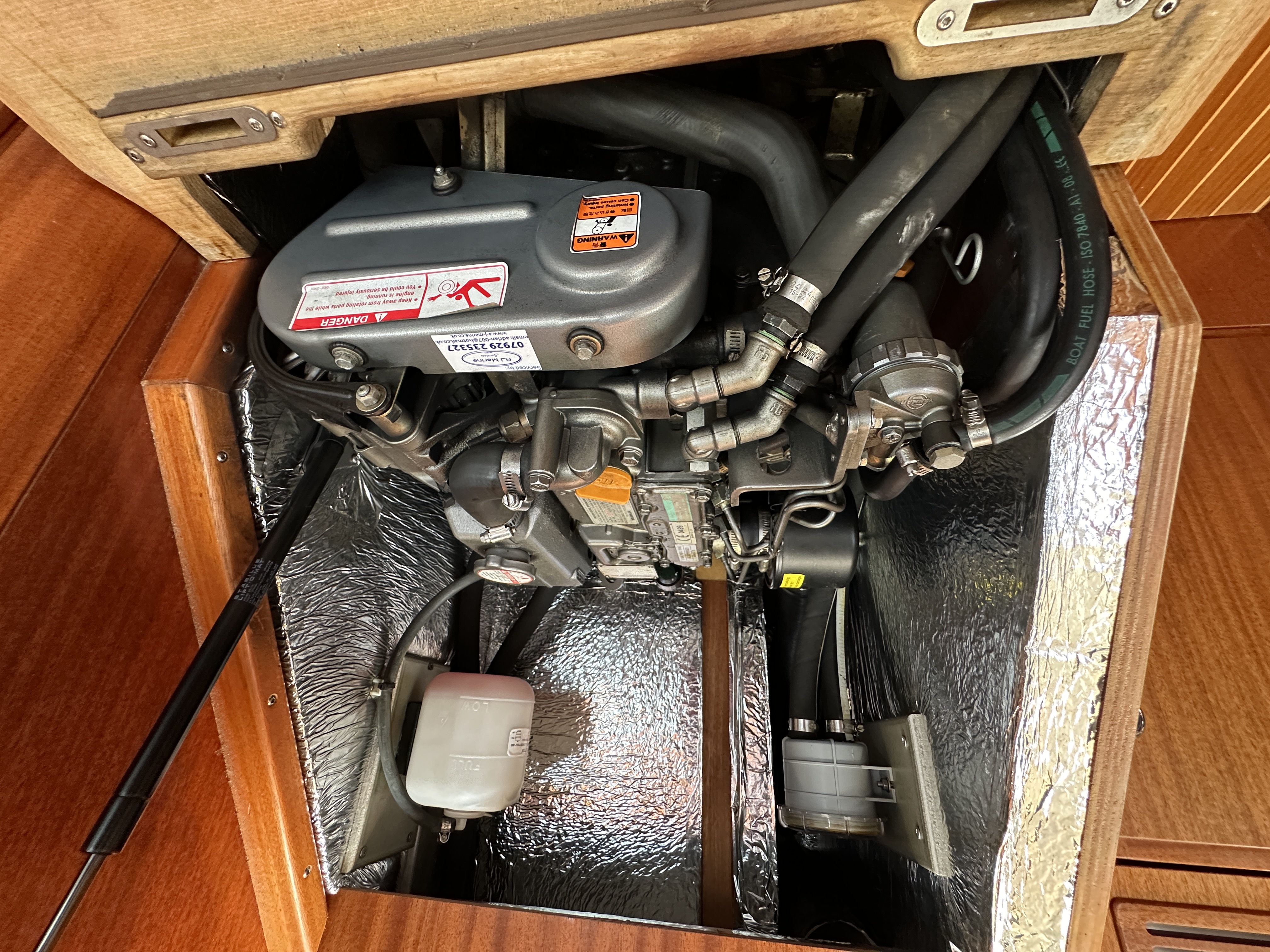 Diesel capacity: 100 litres (cruising range in calm waters is approx. 400 nautical miles - fuel gauge in saloon)