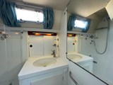 AFT CABIN: One double berth to starboard and one single berth to port. 2022 leatherette upholstery. Plenty of storage space. Head compartments with washbasin, ELECTRIC WC and separate shower.