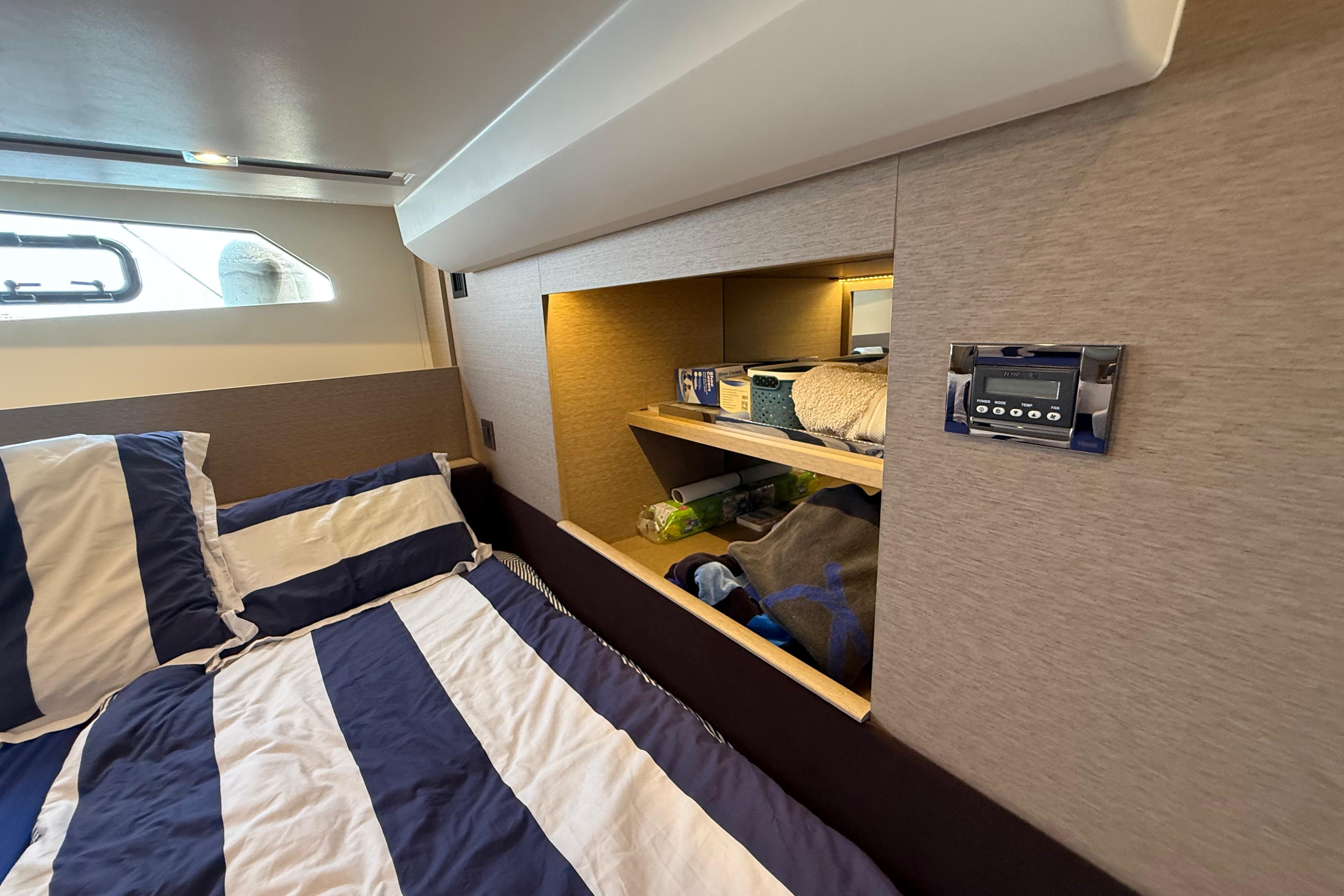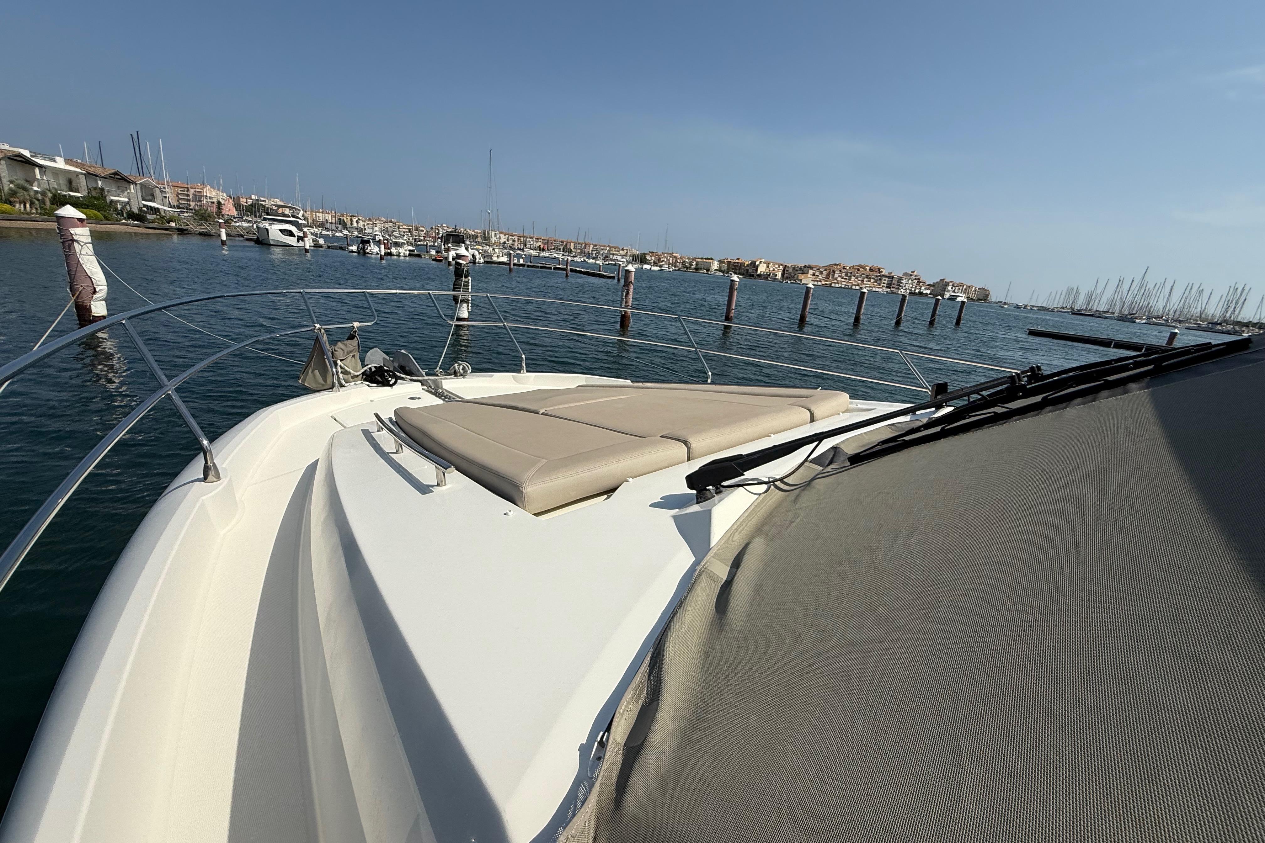 Cette unité affiche seulement 300 heures moteur et bénéficie d’un niveau d’équipement haut de gamme, parfaitement adapté à la croisière familiale, aux week-ends prolongés et aux navigations côtières ou semi-hauturières en Méditerranée.