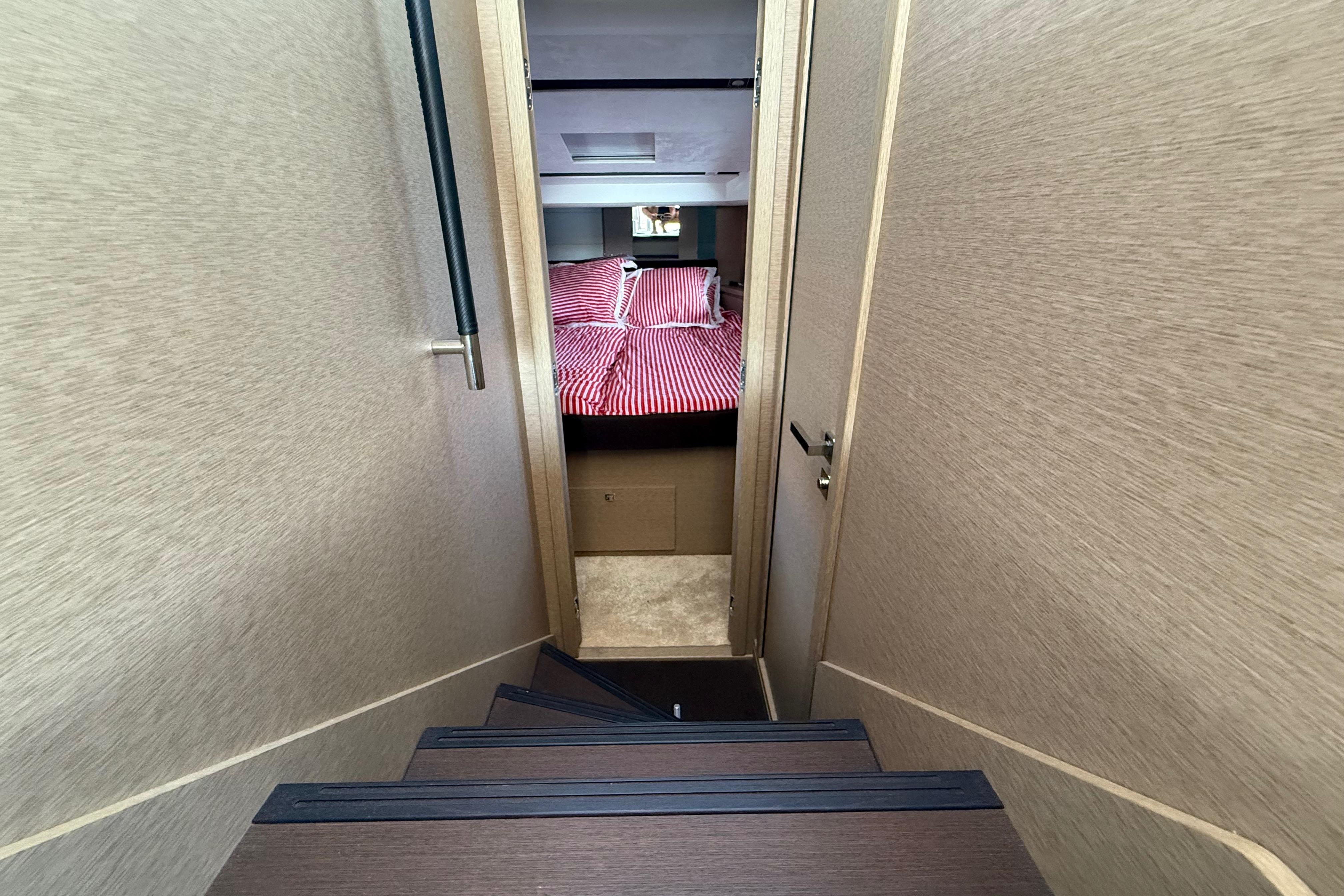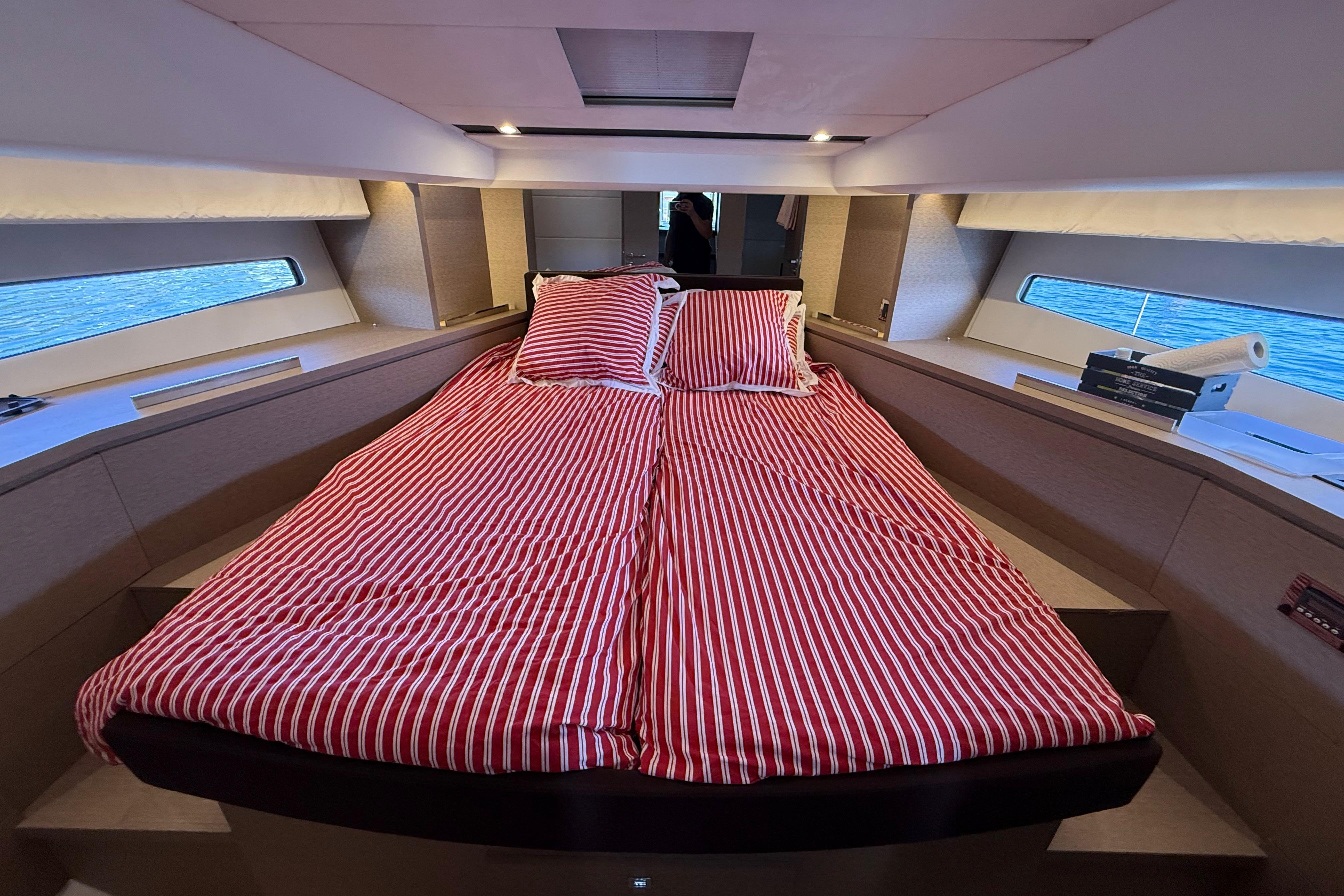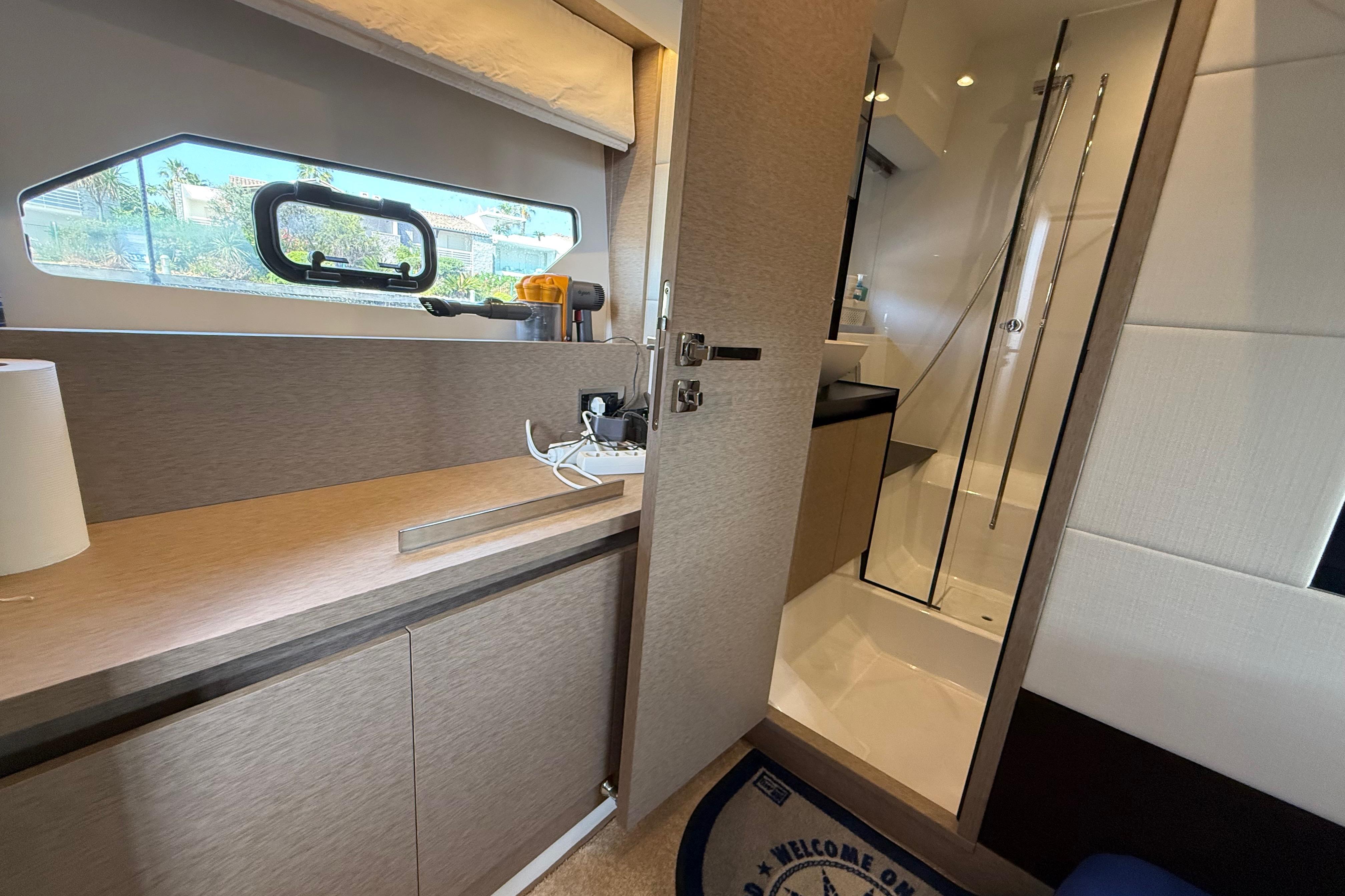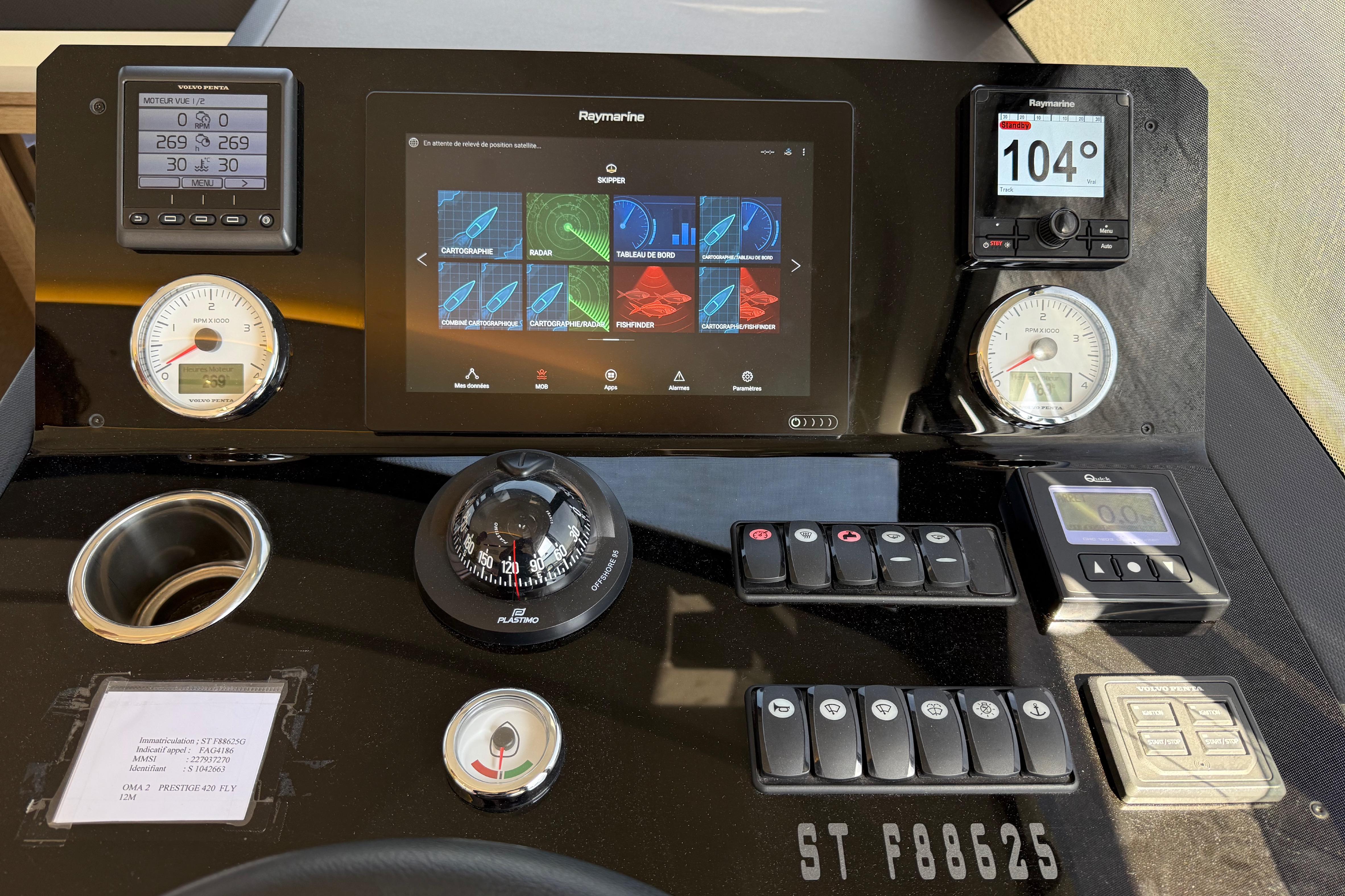 Grâce à sa motorisation Volvo Penta IPS 500 (2 × 370 CV) et à son joystick IPS, il offre une navigation fluide, silencieuse et des manœuvres particulièrement précises, même en équipage réduit.