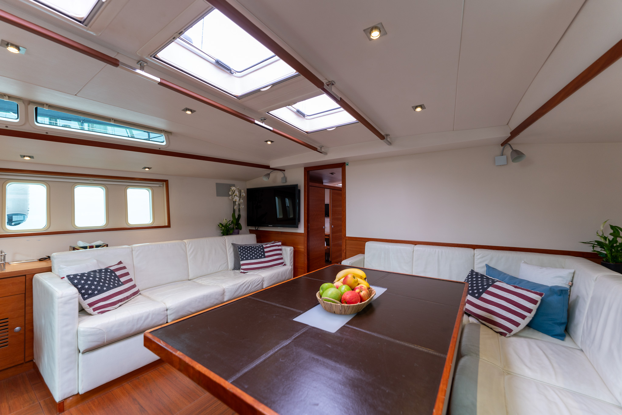 L shaped 4 plus 2 sofa to starboard