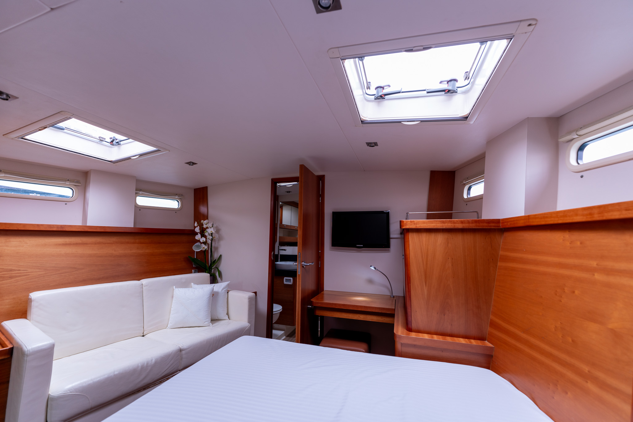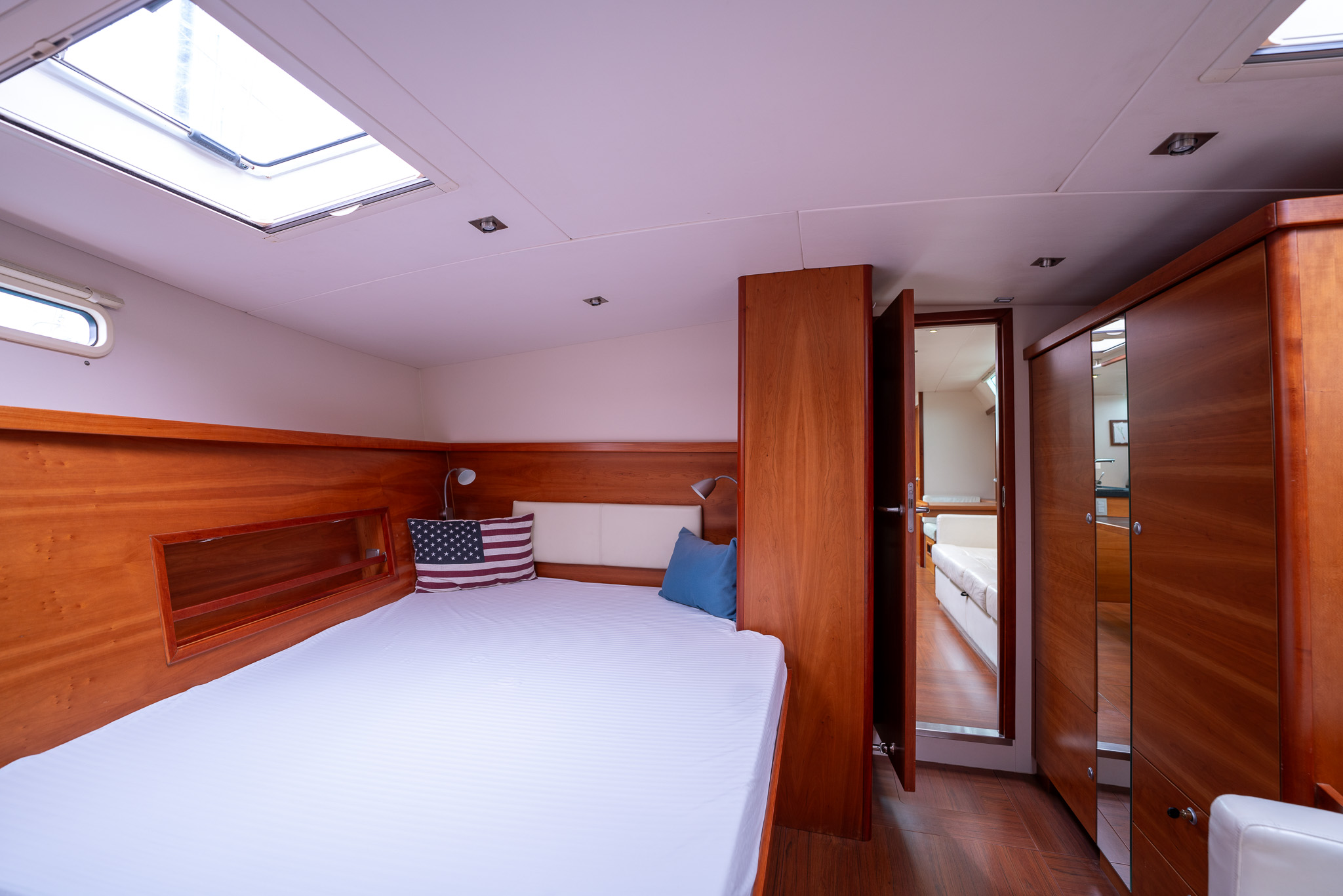 Master cabin forward with double berth to starboard