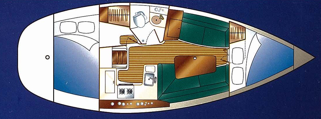 Spacious shoal draft in mast furling family cruising yacht designed by Warren R. Luhrs