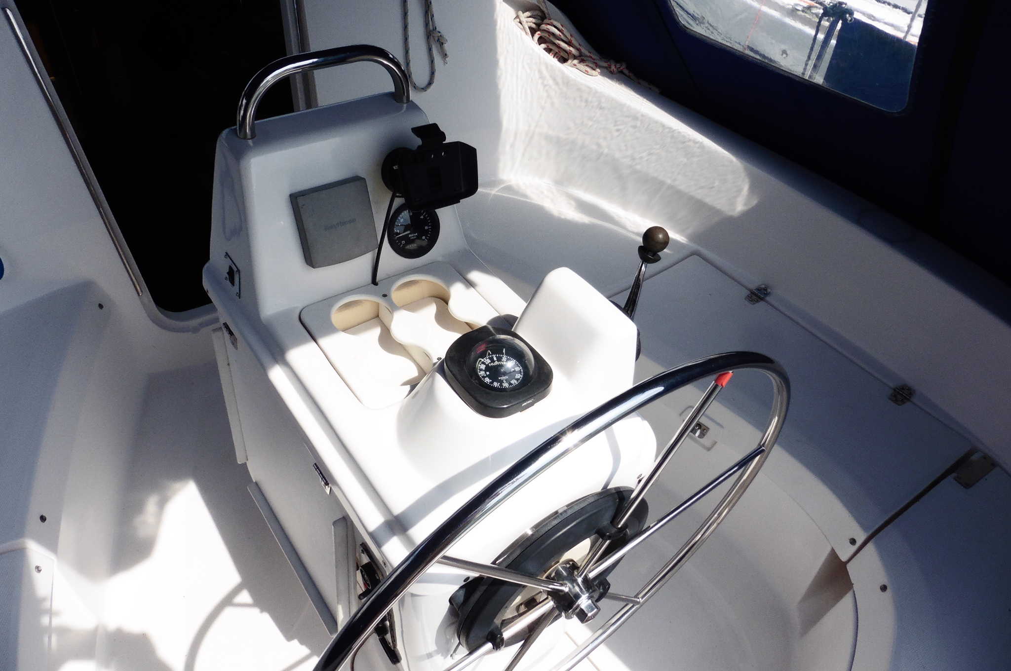 Cobra MC600TIEU chart plotter (removed for security but included) which fits onto wheel binnacle