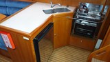 GALLEY to starboard with large fridge, stainless steel sink with mixer tap, full oven with grill and 2 burner gas hob and plenty of storage. Opposite to port is the