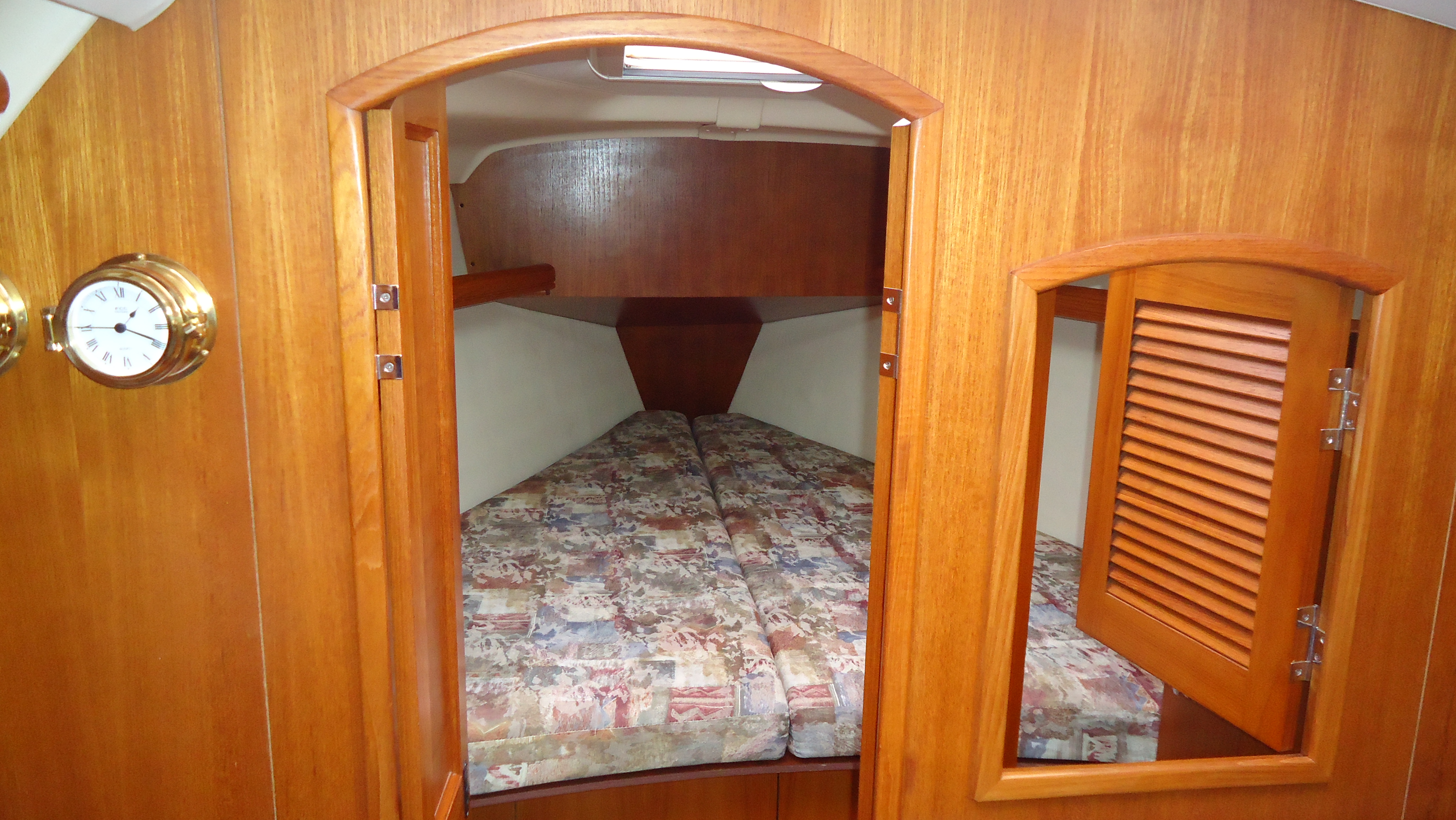 MAIN CABIN to the Aft with large double and plenty of storage. Moving forward is the