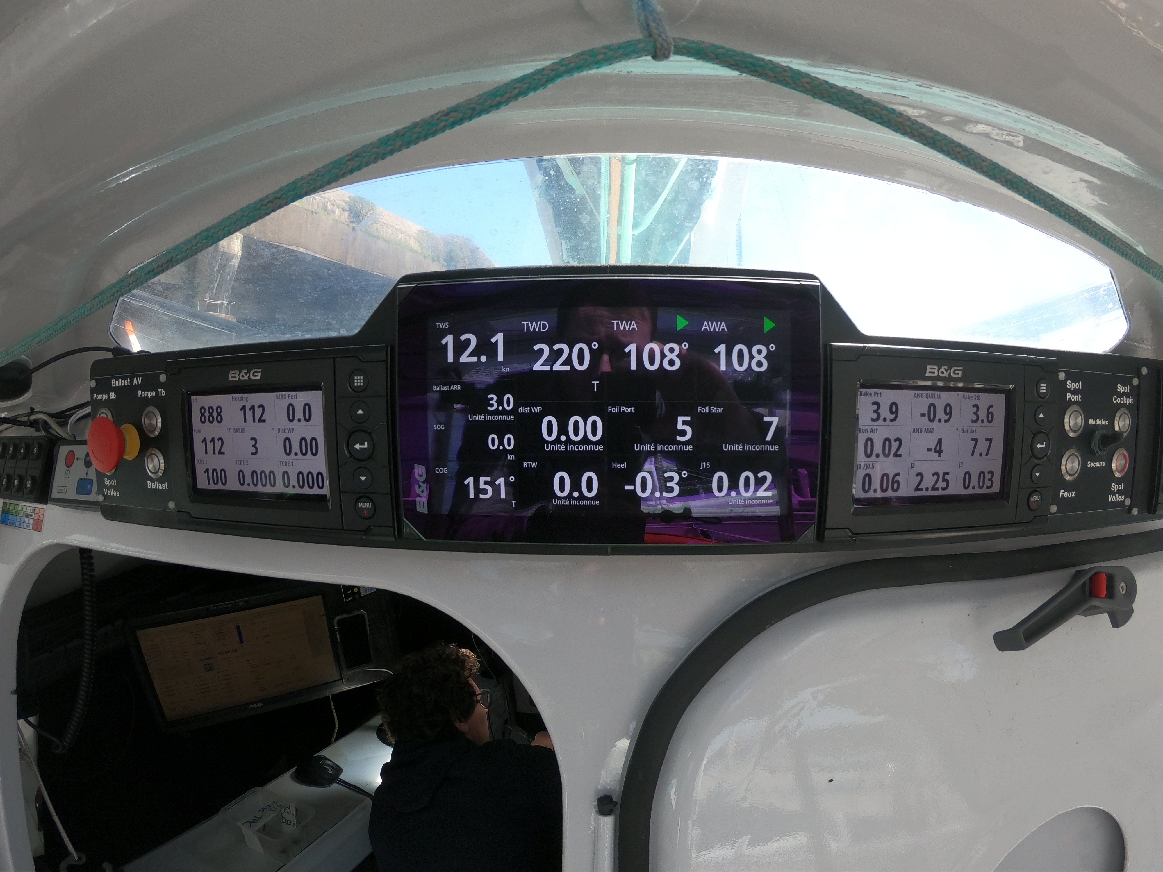 Électronique B&G comme base de la navigation avec capteur supplémentaire pour surveiller les charges en temps réel ressenties par le yacht.
