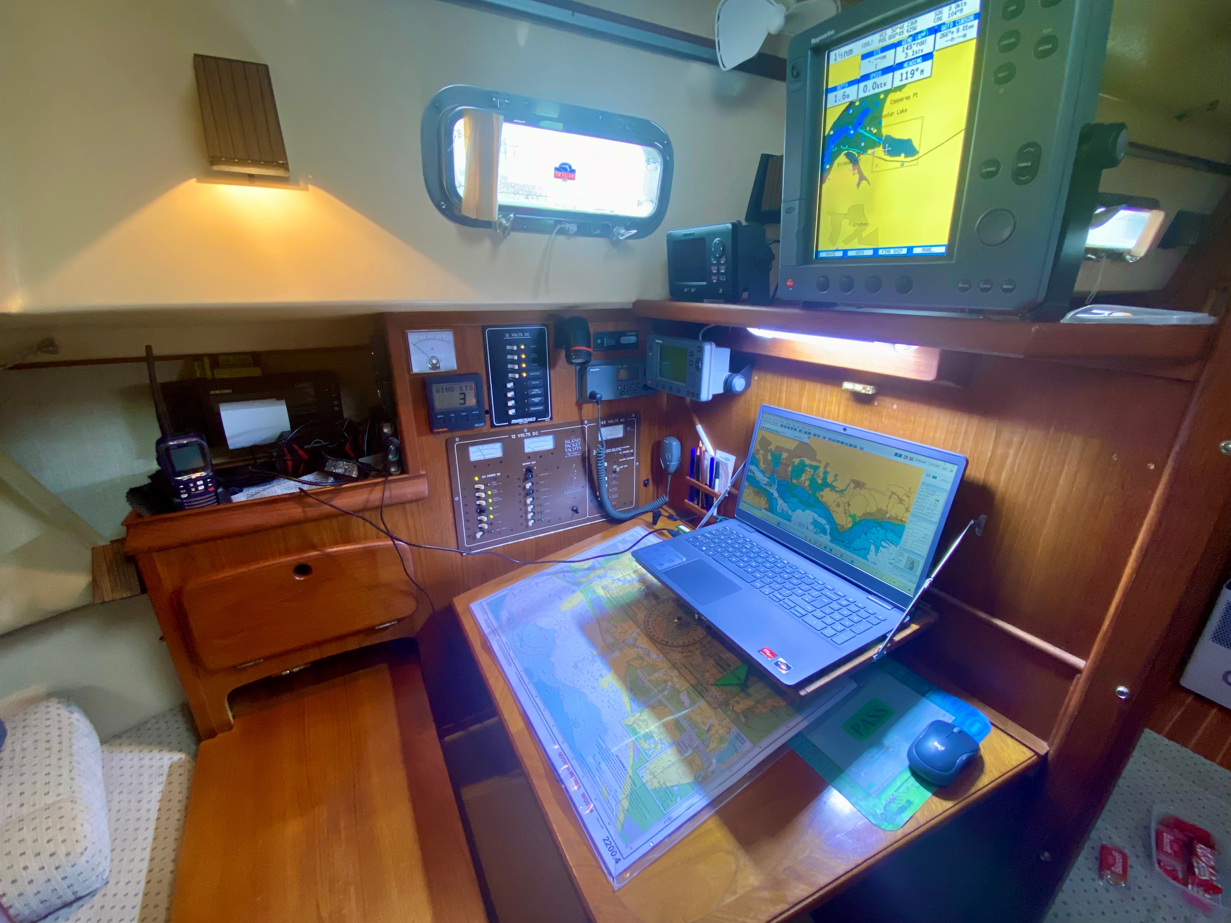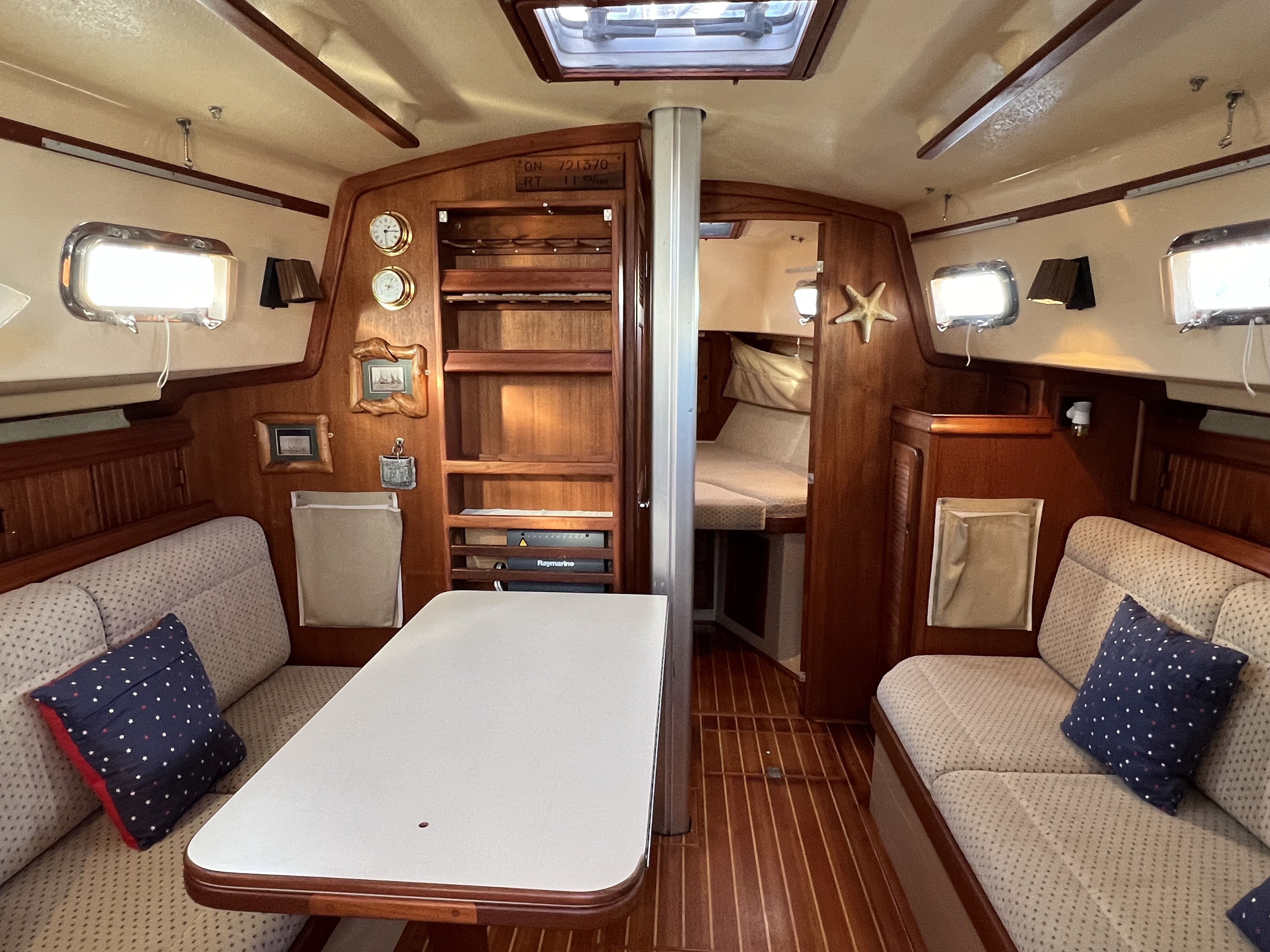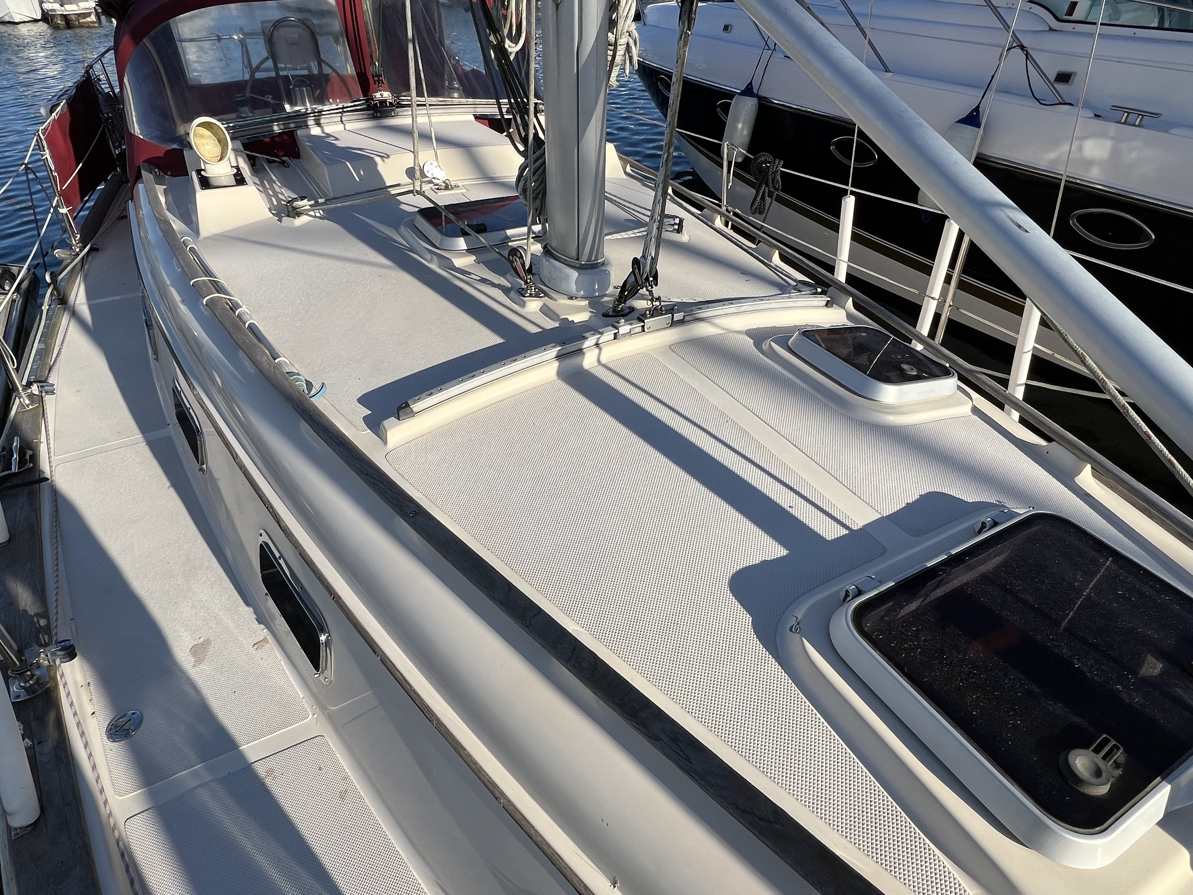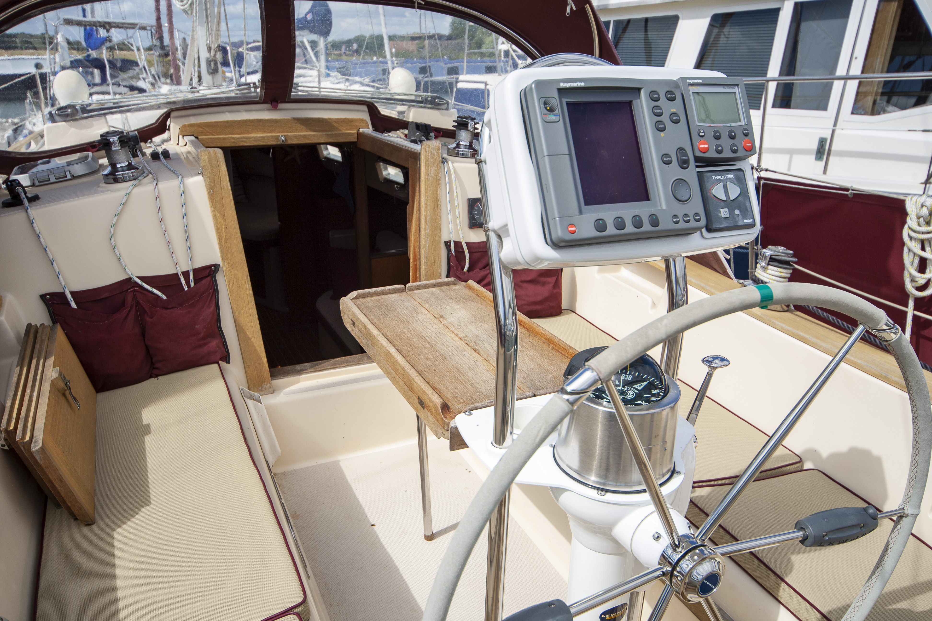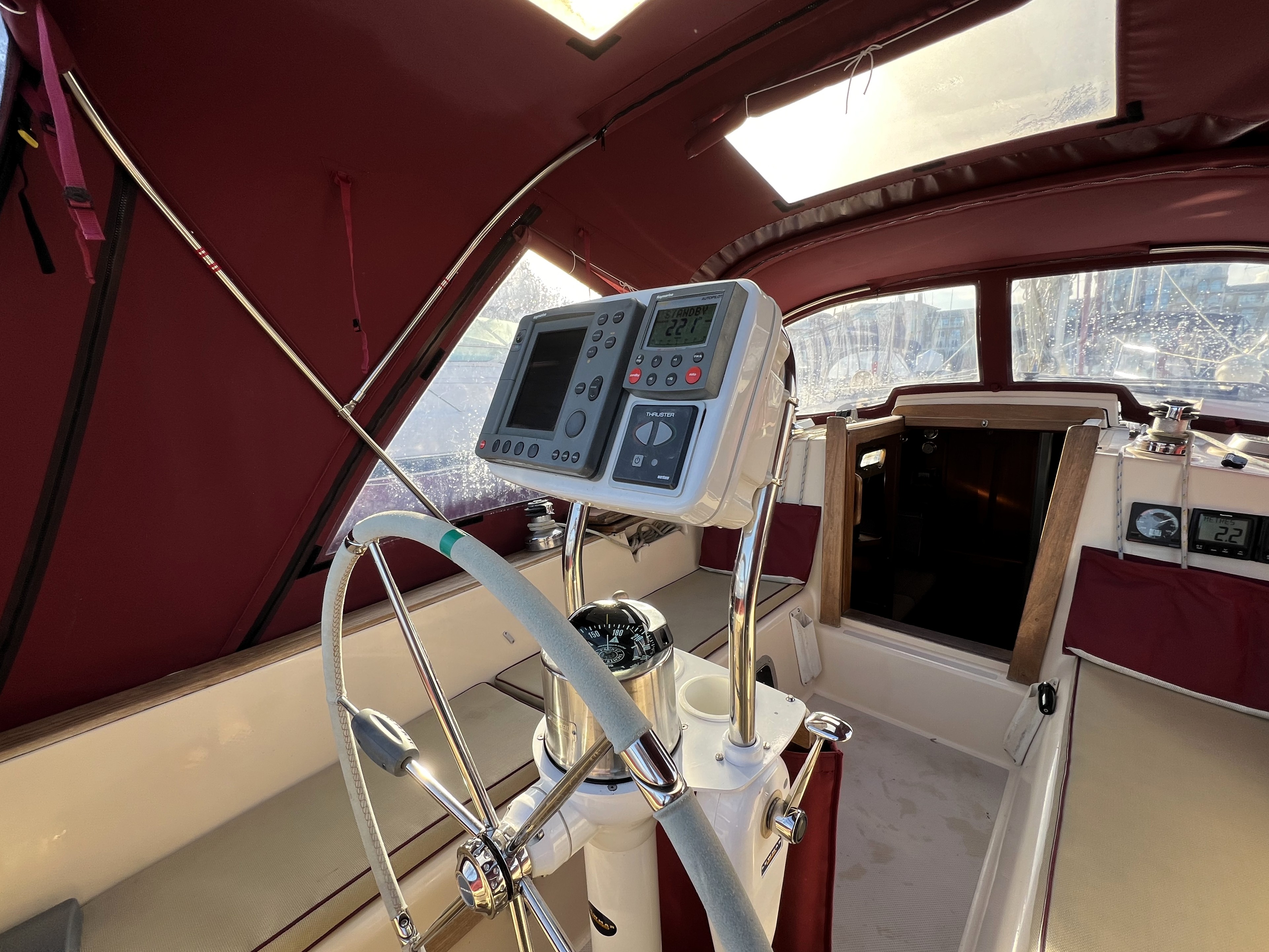 Equipped with bow thruster, heating, radar, chart plotters, AIS, autopilot and much more, she is perfectly equipped for long distance and coastal cruising in comfort and safety.