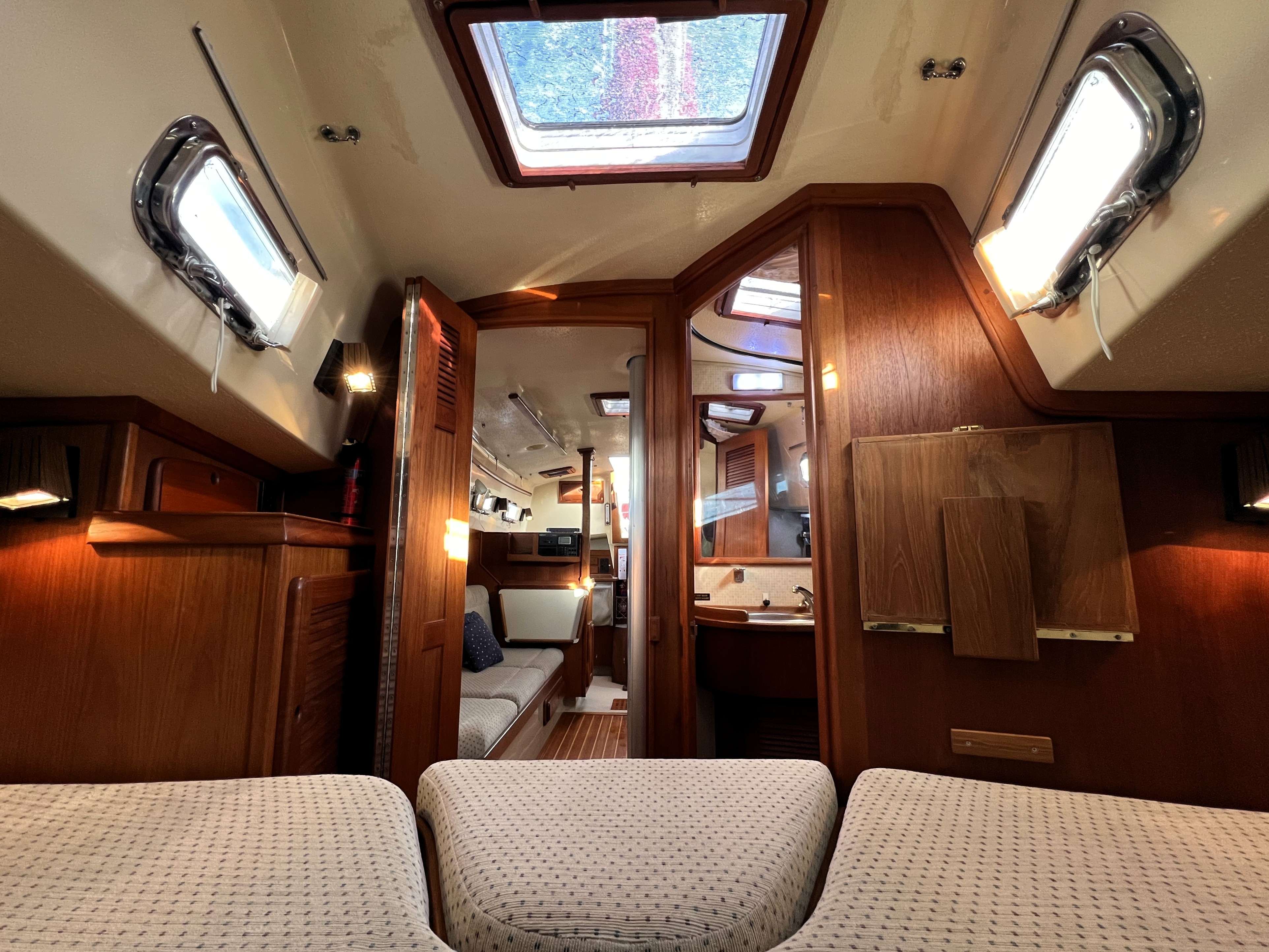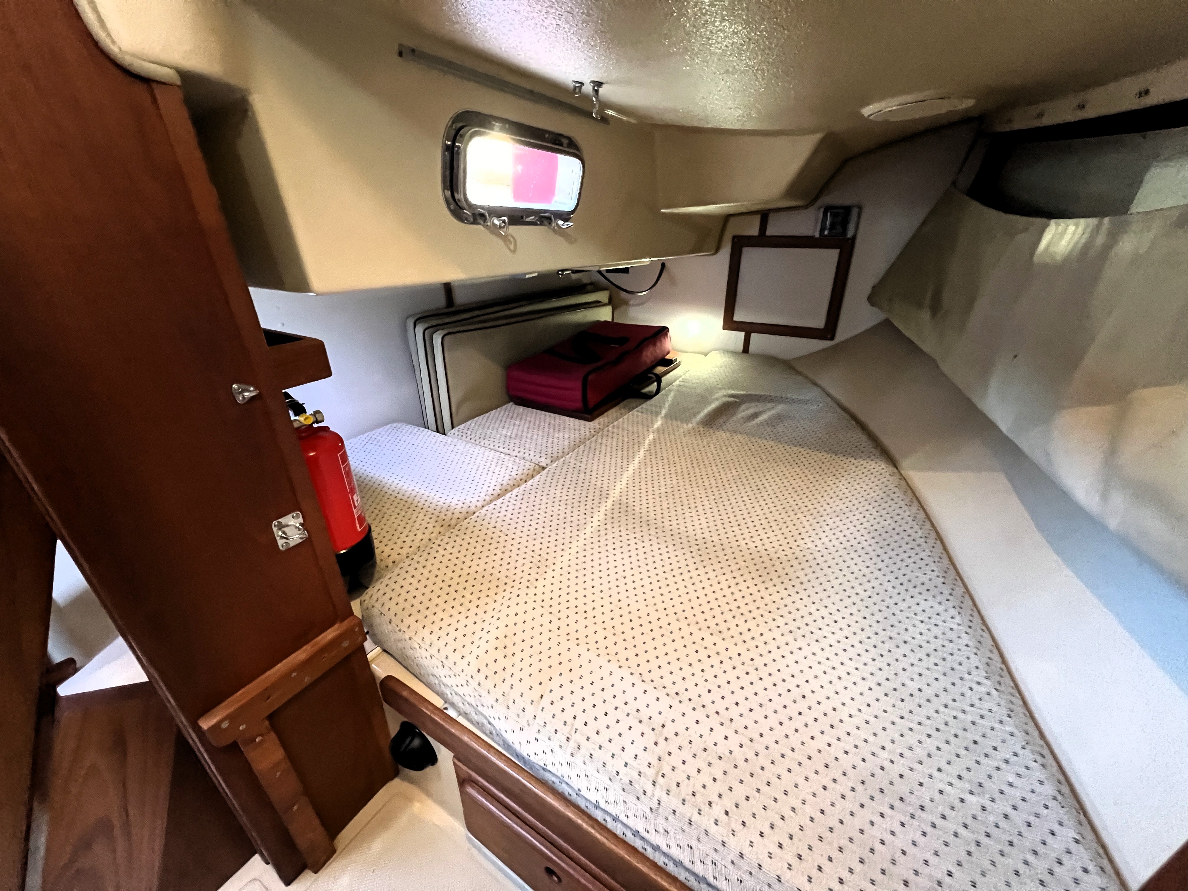 Large double berth with infill or two singles to the forward of the boat with ample stowage.