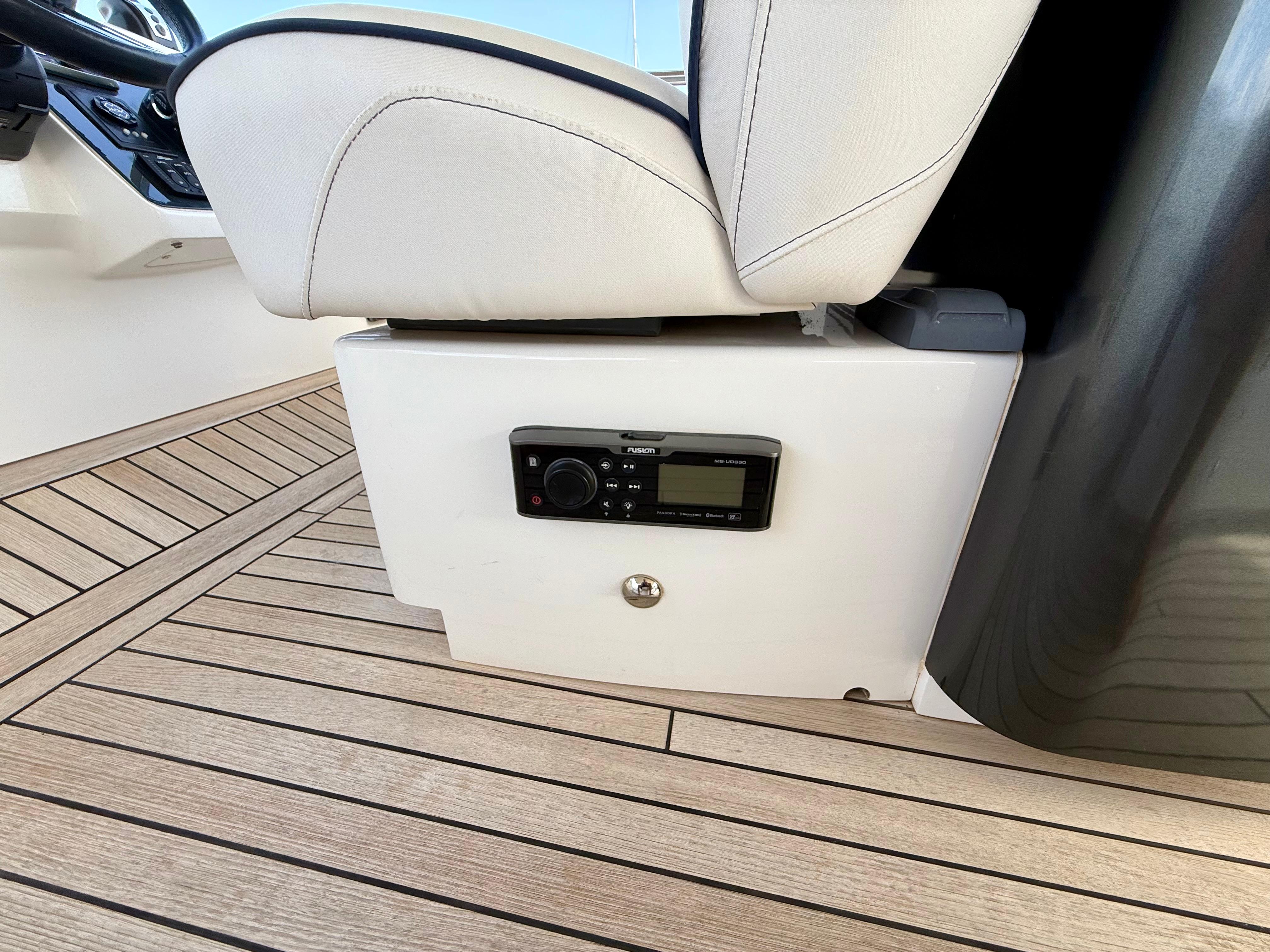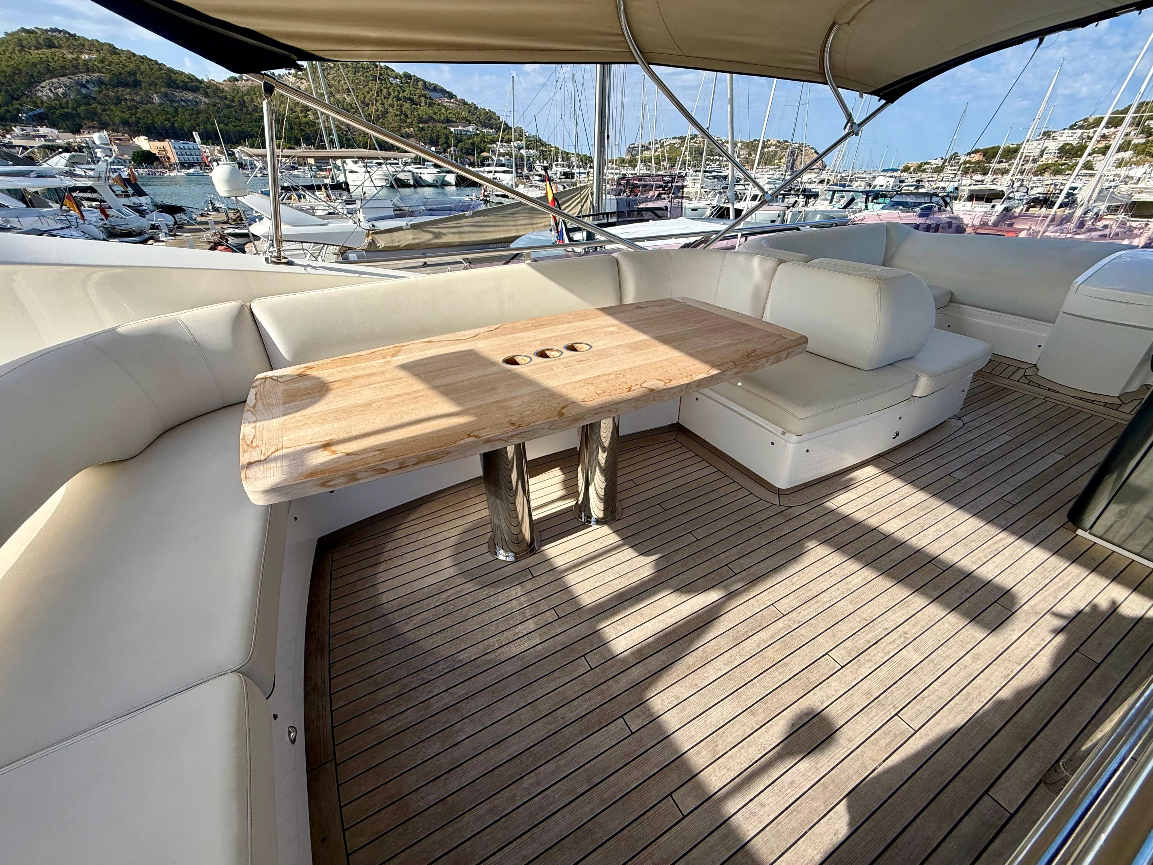 Teak decking throughout cockpit, flybridge, and bathing platform