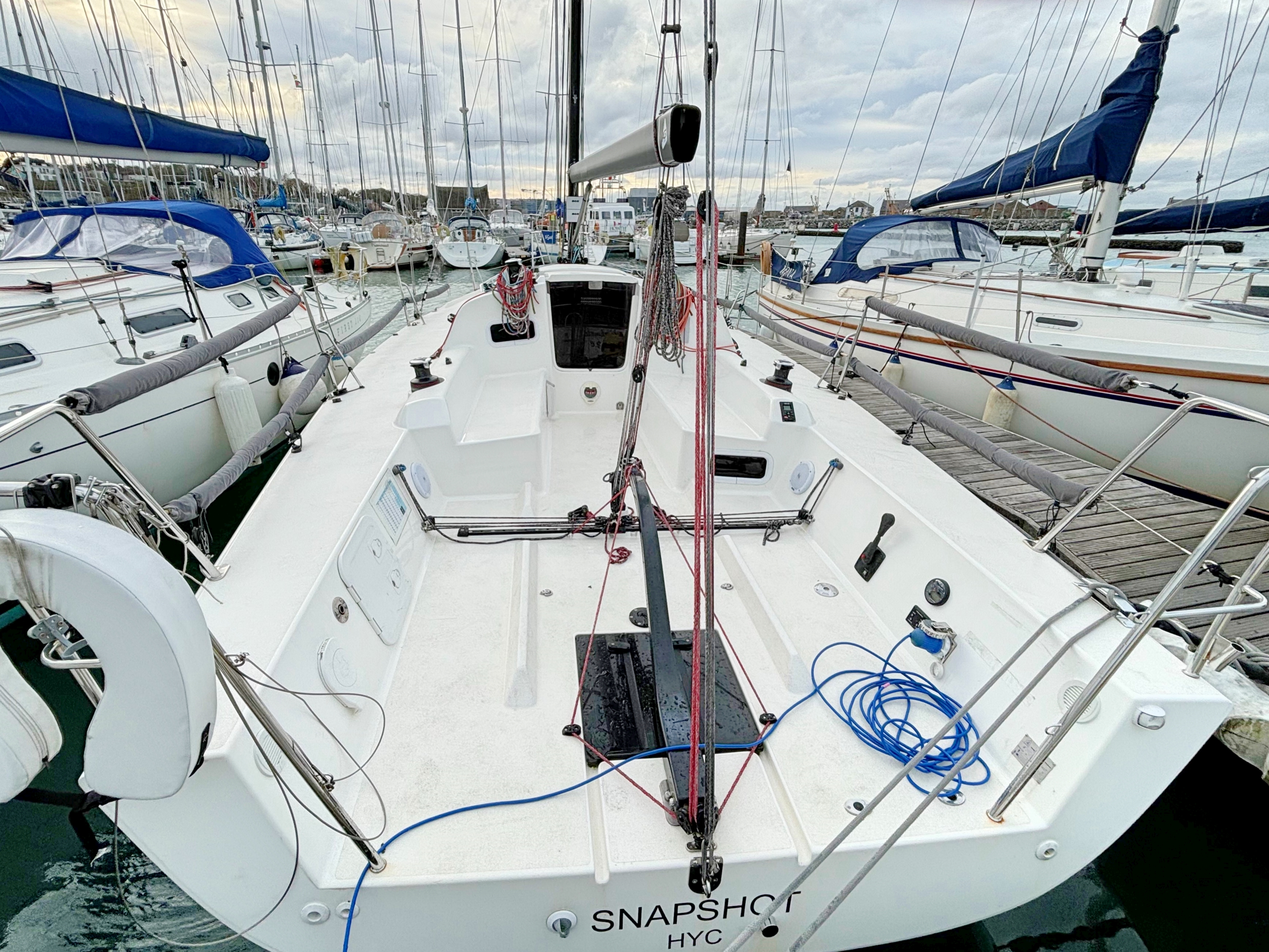 Race record J99 Snapshot is without doubt one of the most successful J/99's on the European scene. Regularly winning local events and club races and featuring on the podium at both National and International events. Below is a sample of successes for each race season: 2024 5th IRC Europeans 2024 2nd J Cup 2024 1st HYC Autumn League 2023 1st IRC Double hander Race HYC 2nd IRC 1 Sovereigns Week Championship Cork 2nd Volvo Dun Laoghaire Regatta 2022 HYC Autumn League 1st ICRA Boat of the year 2022 1st IRC 3 Round Ireland Yacht Race 2nd IRC Overall Round Ireland Yacht Race 2nd Wave Regatta 2021 2nd HYC Autumn League 1st IRC Double hander Race HYC 1st Overall Winner Sovereigns Week Championship Cork 1st IRC 1 Sovereigns Week Championship Cork