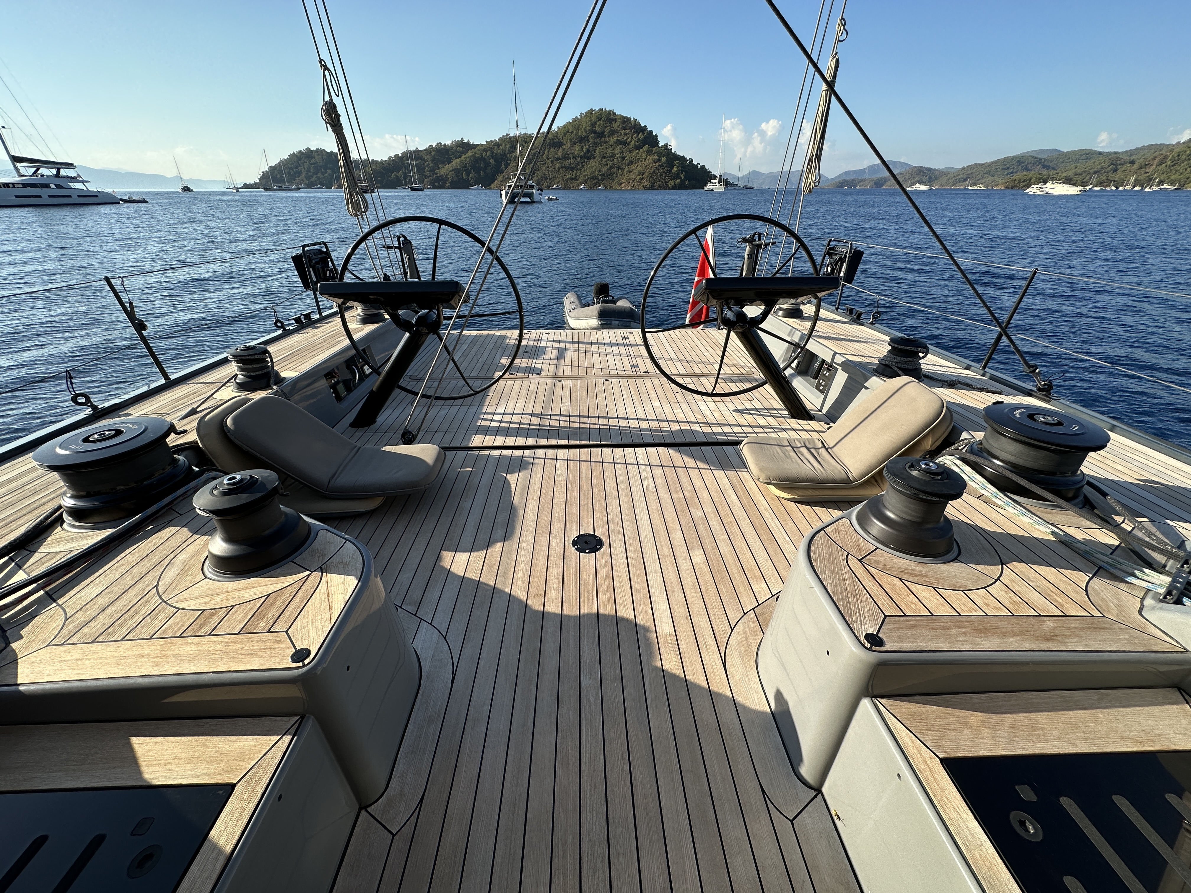 In a similar vein the foresails can be setup for either shorthanded cruising, with powered furling on both foresails, or with a twin slotted headstay system for added aerodynamics and performance, which means the boat can be sailed as fast or as leisurely as required.