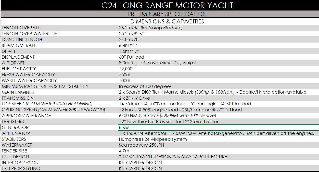 NEW - 24M EXPEDITION - LONG RANGE MOTORYACHT -2025. Kit Carlier Design NZ & Stimson Naval Architects NZ. Engineering by Gurit NZ