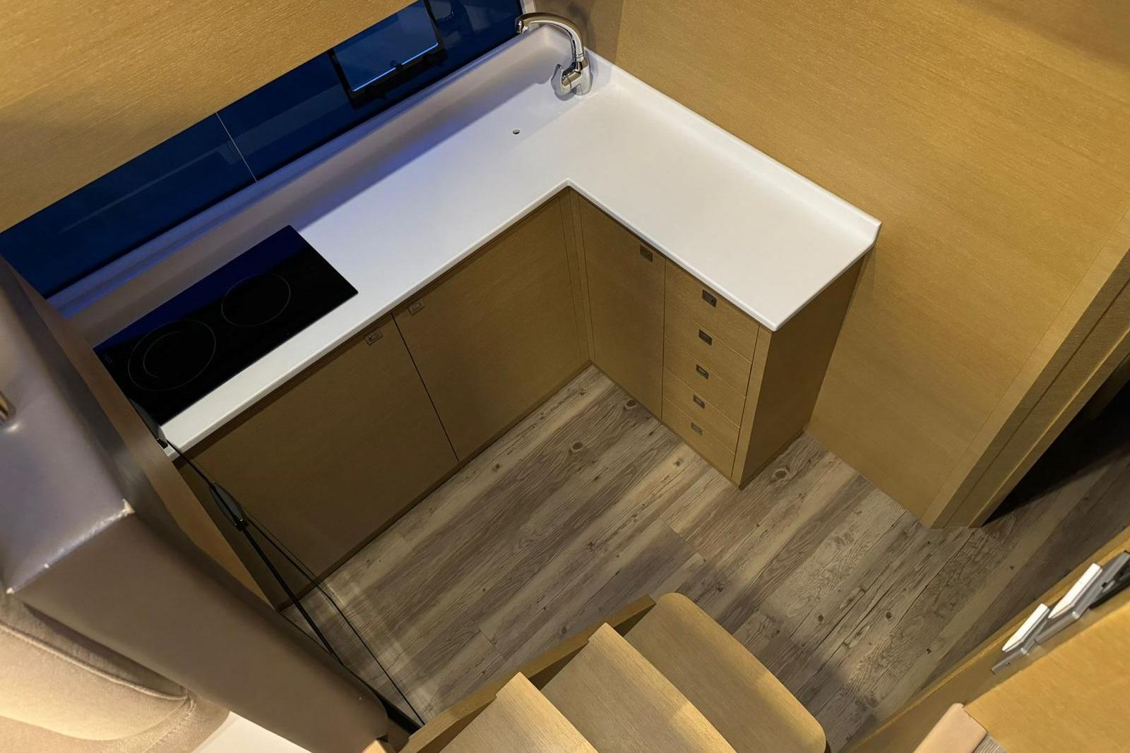 A new concept inviting to live on board, where comfort and enjoyment combine in perfect balance. The addition of the electric roof and windows provide the inside of the boat with a feeling of spaciousness and luminosity, far beyond the conventional for this type of boats.