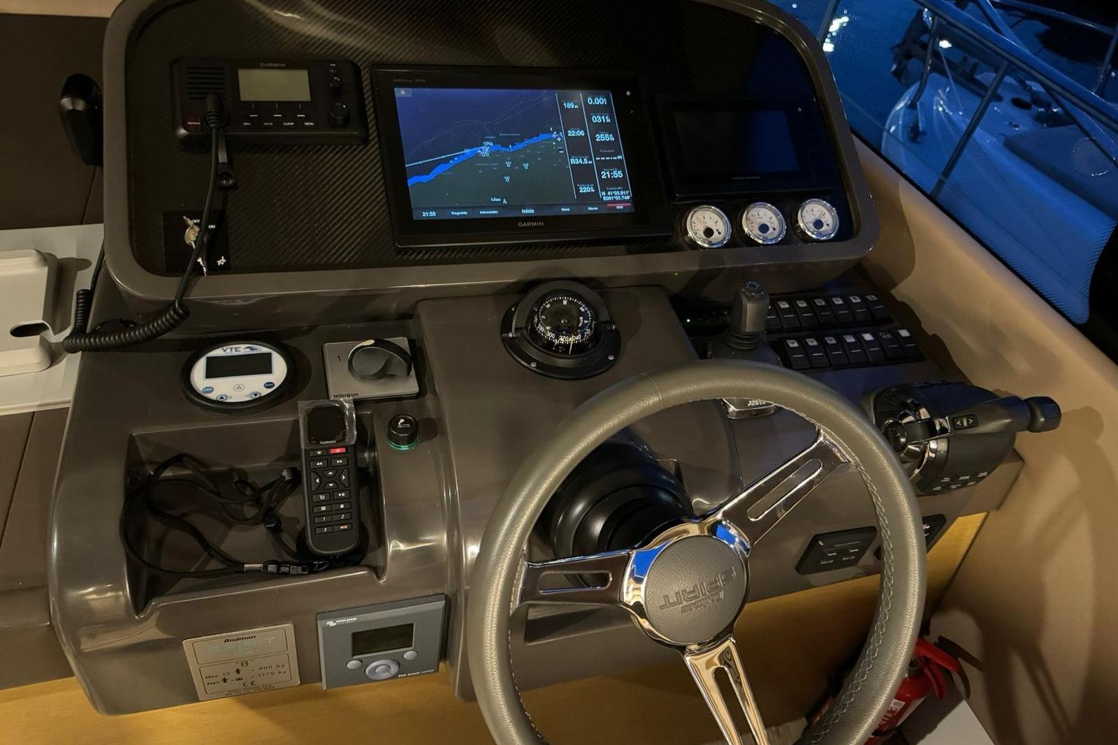 The addition of the electric roof and windows provide the inside of the boat with a feeling of spaciousness and luminosity, far beyond the conventional for this type of boats.