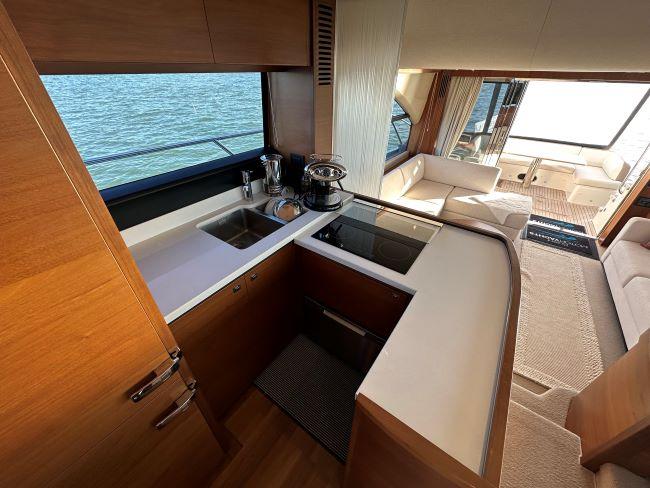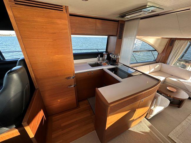 U-shaped galley behind lower helm