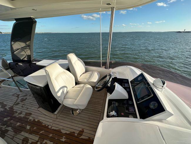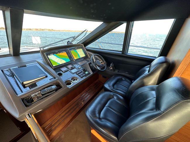 Lower helm with driver and co-pilot seat in porcelain leather, electrically operated windows port and starboard