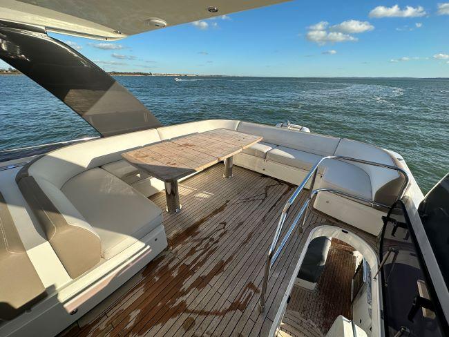 This is a fabulous opportunity to purchase a stunning 2016 Princess 60 TTop powered by a pair of Volvo Penta D13-900hp engines with only 550hrs and a great inventory including air-conditioning and new Eberspacher heating and fin stabilisers to satisfy all while cruising the South Coast in the style and comfort only Princess offer.