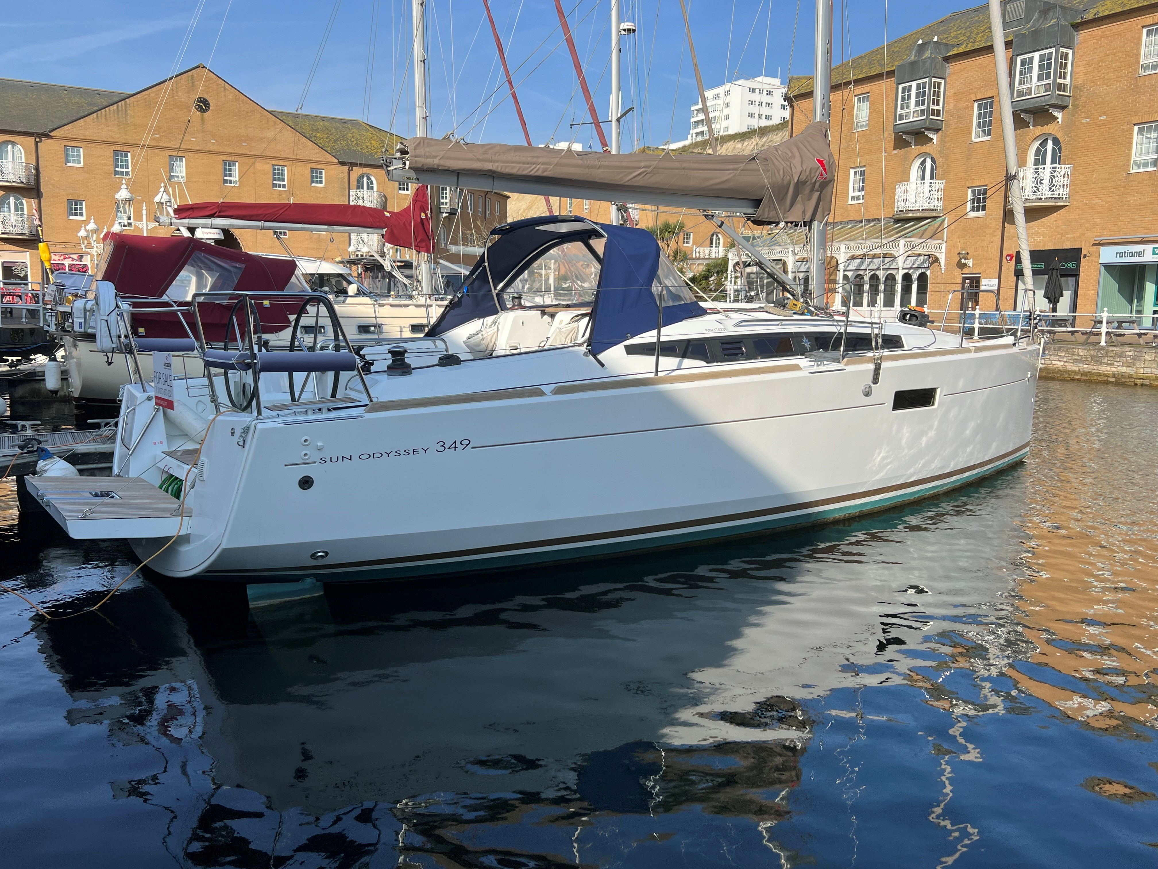 Jeanneau Sun Odyssey 349 L/K built in 2015. Two cabin layout with hydraulic lift keel, slab reefed with stack pack, furling genoa, Bow Thruster, B&G electronics, heating, microwave, boarding gates to starboard and port, fusion stereo and more. Sleeps 4 in tow cabins or 6 including saloon.