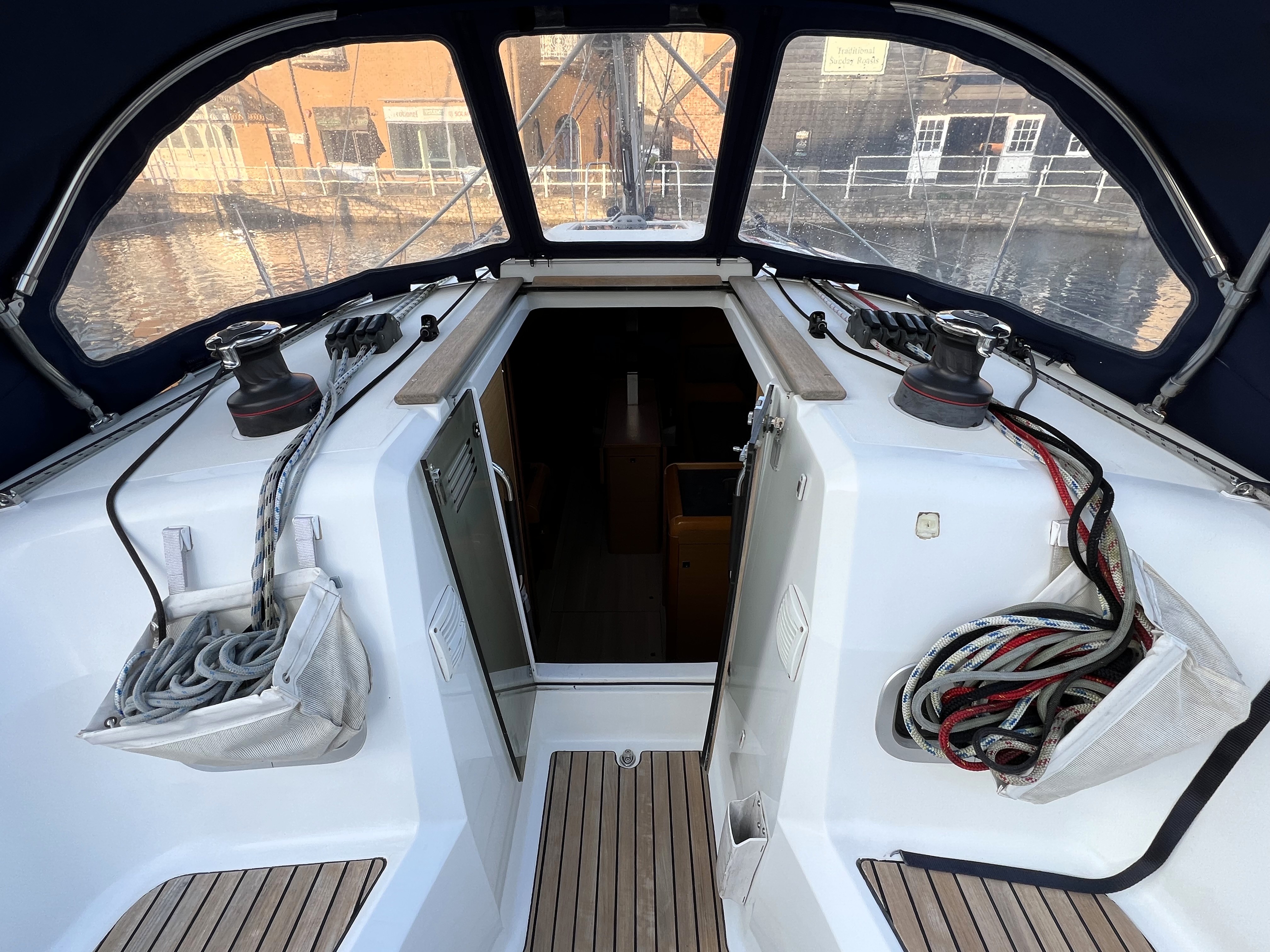 Teak cockpit sole.
