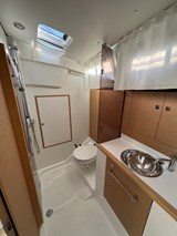 Cabinet de toilette sur babord avec lavabo, wc et douche separee.
