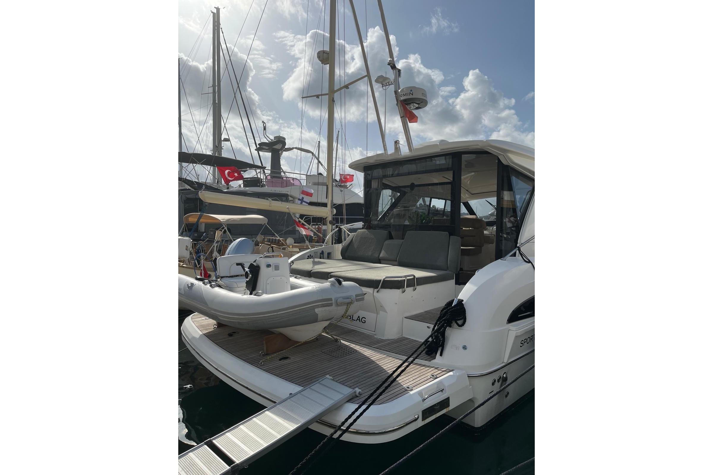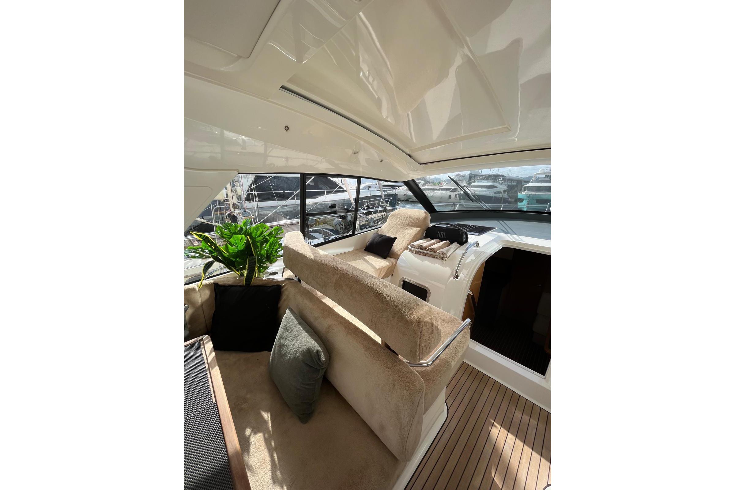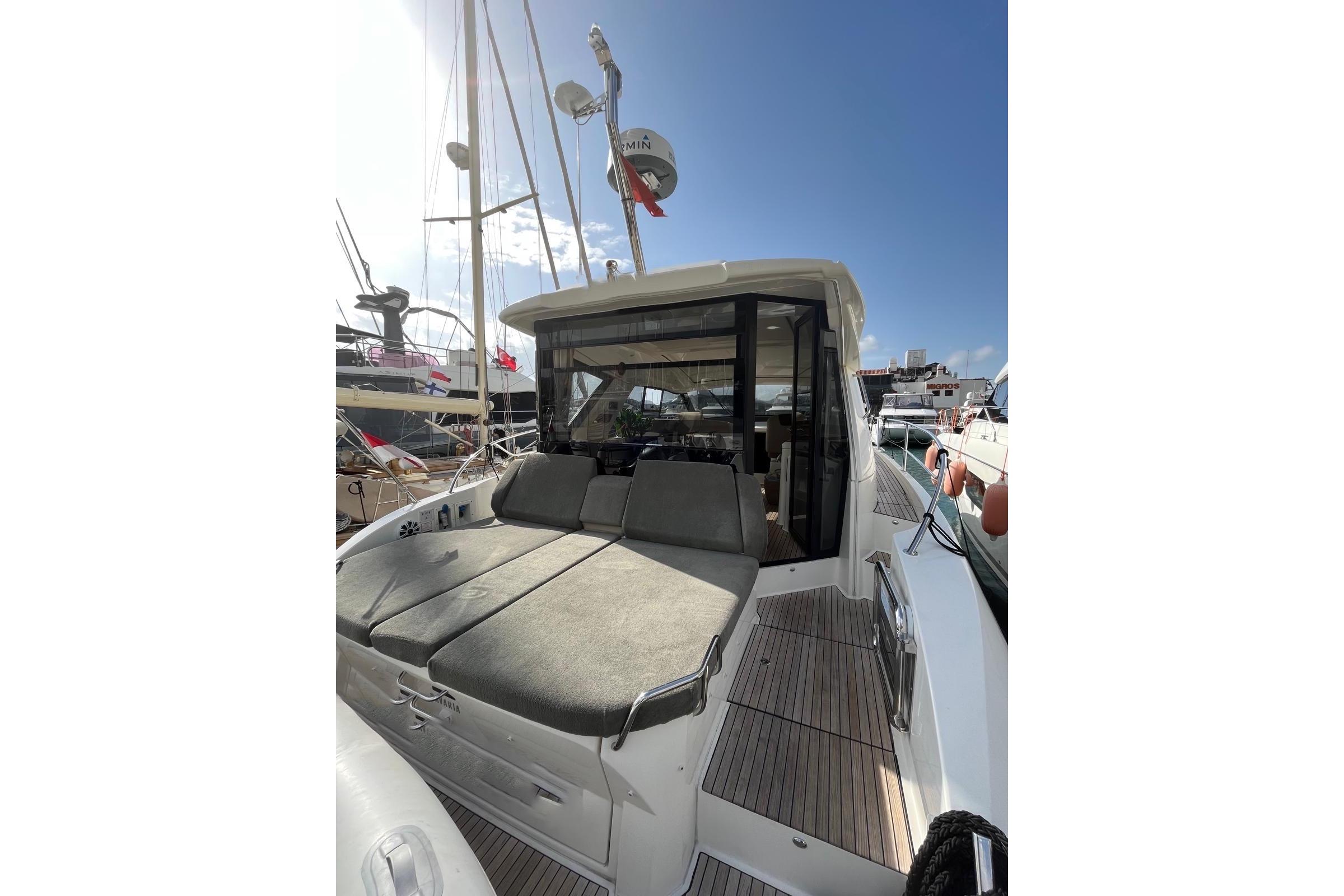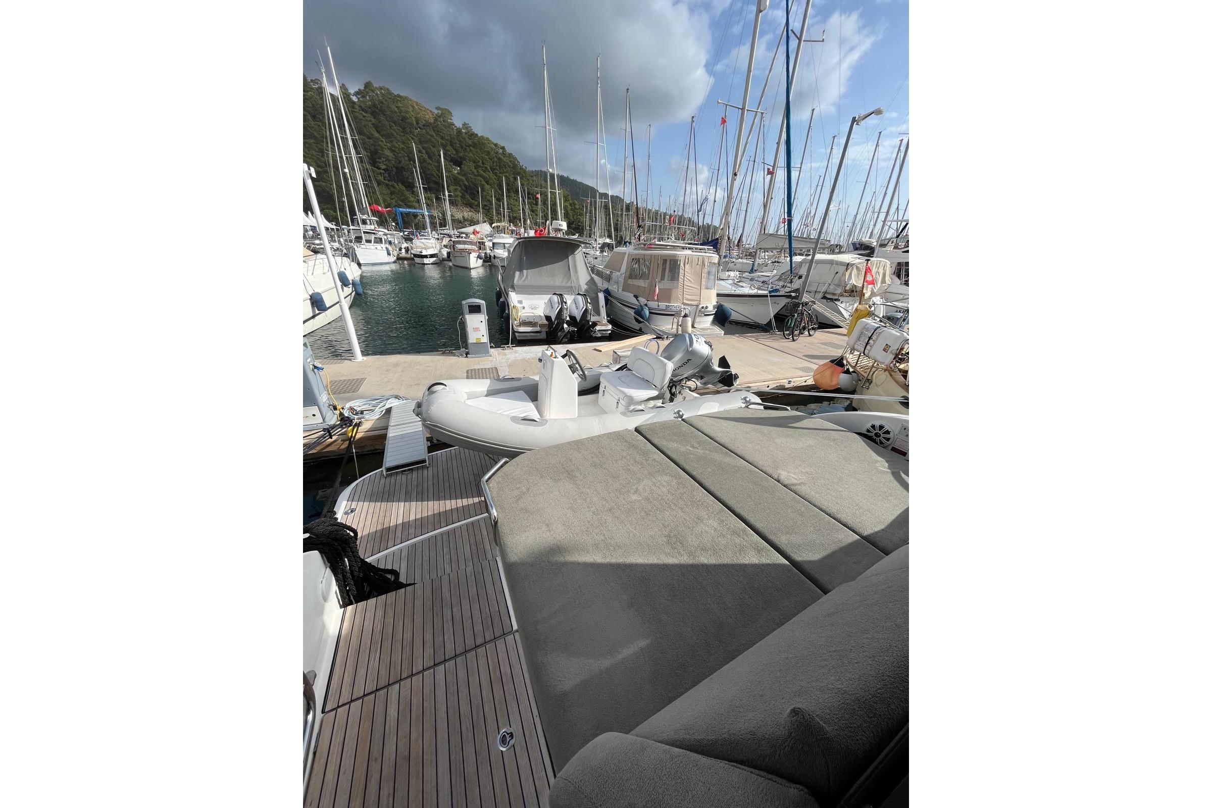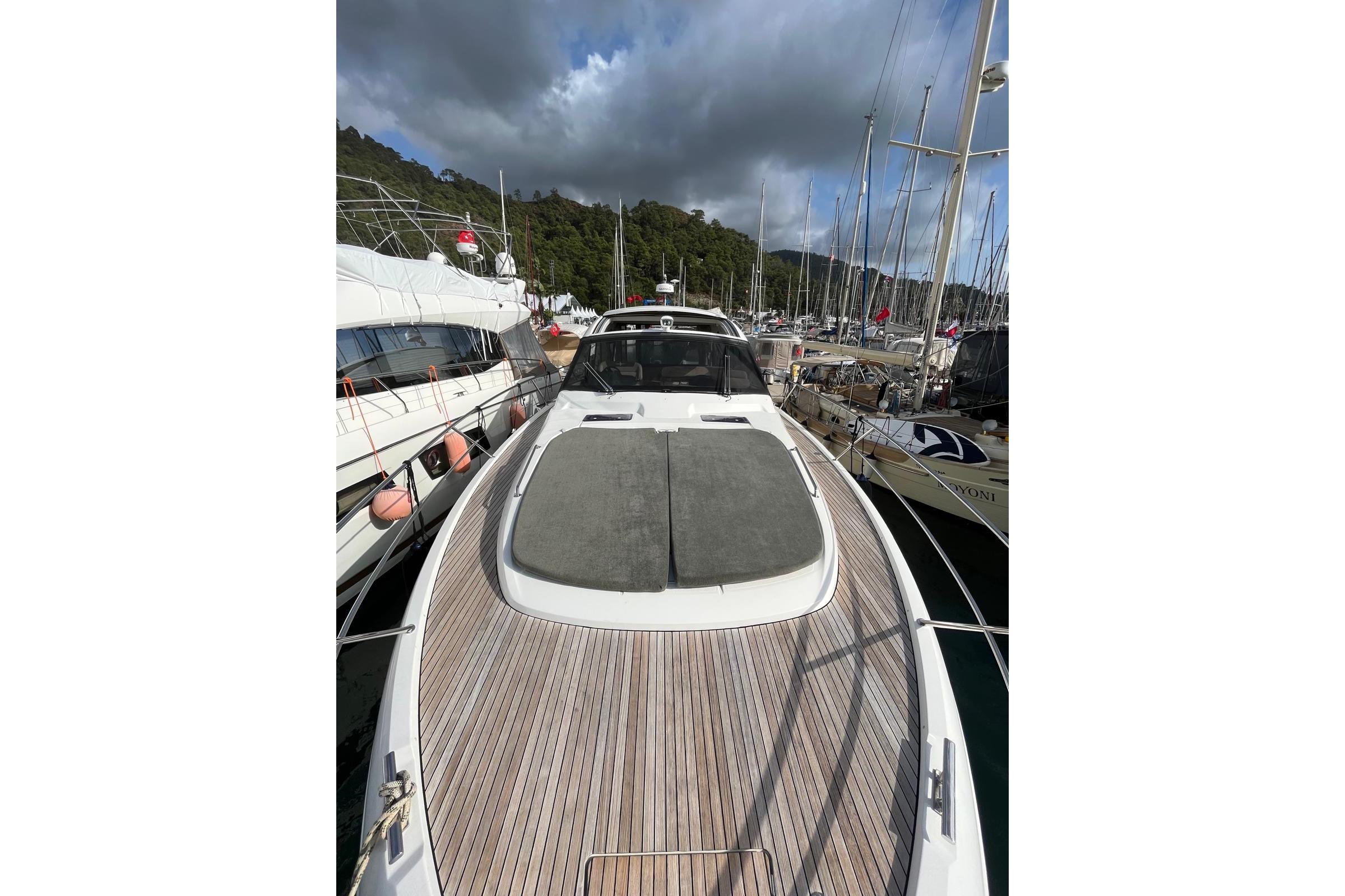 Teak Deck Convertible Table / Sunbed Cockpit Cushions Forward Sunbathing Pads Opening Rear Window Electric Sunroof Telescopic Gangway Hydraulic Swim Platform Underwater LightsANCHORING & SAFETY