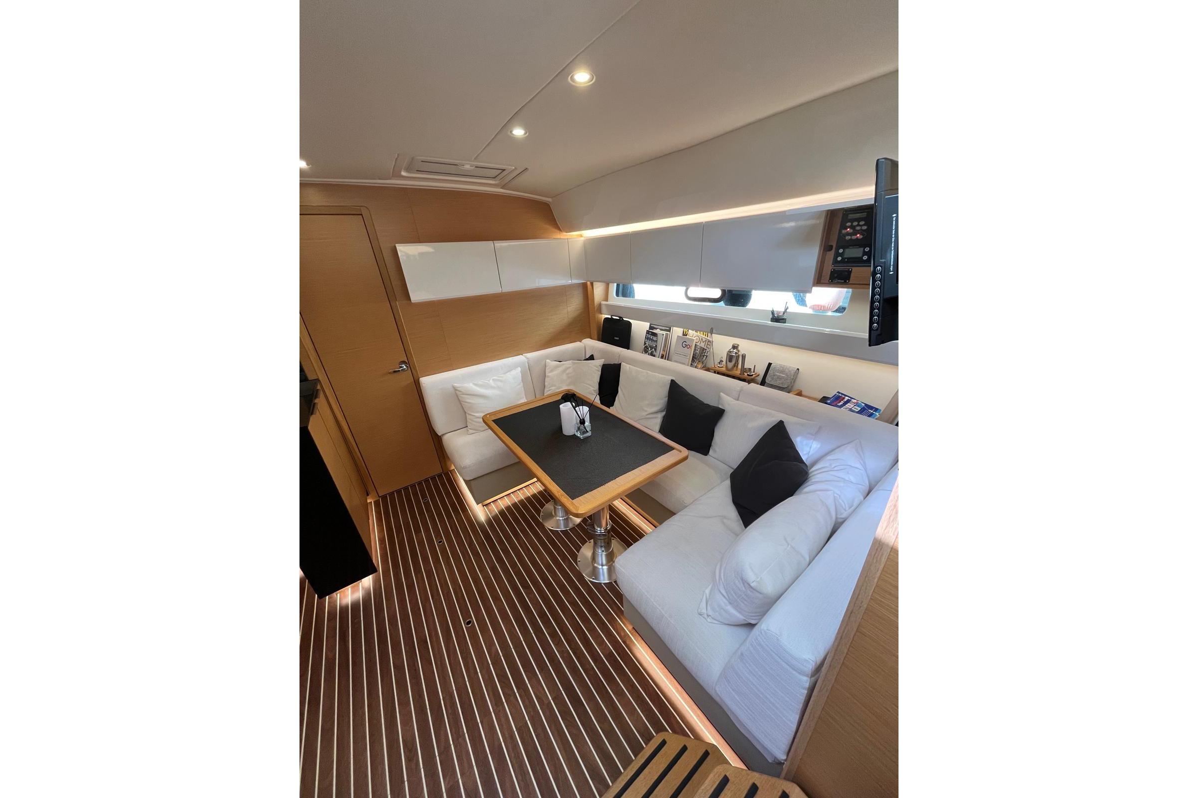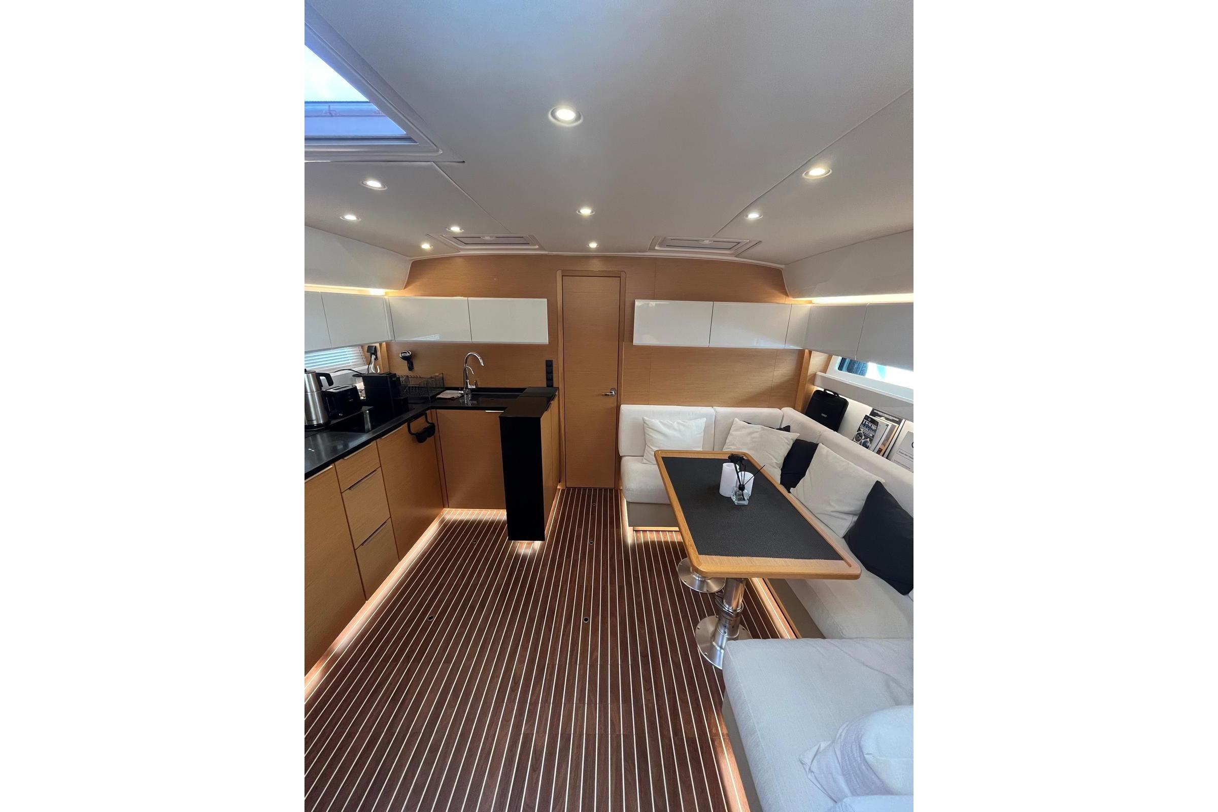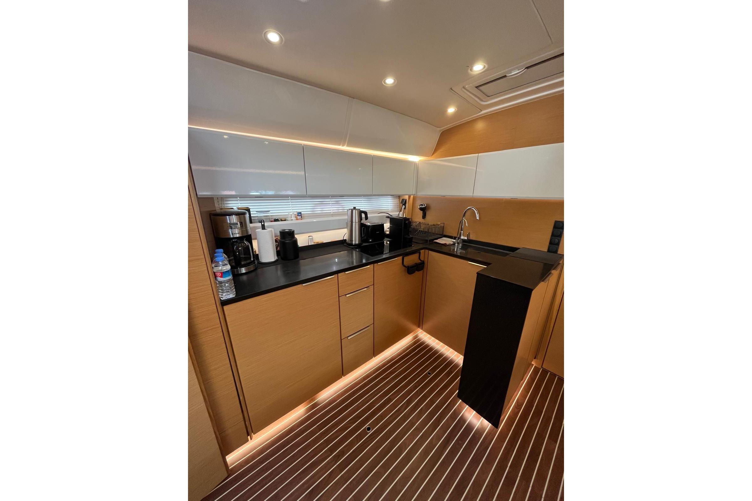Cabins: 2 Berths: 2 × double beds Bathrooms / WC: 2 TV: 2 Sound System: Fusion Air Conditioning: 3 × Webasto Convertible Sofa Convertible Table / Berth Hot Water SystemGALLEY