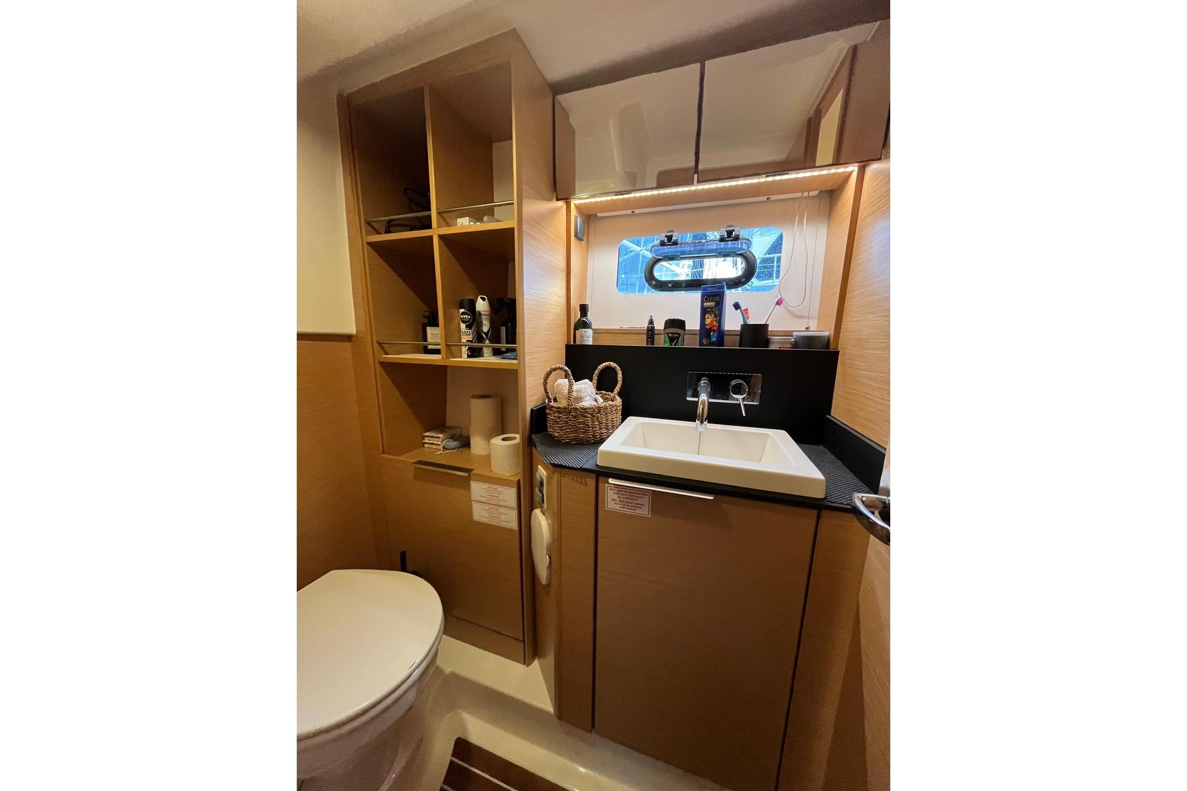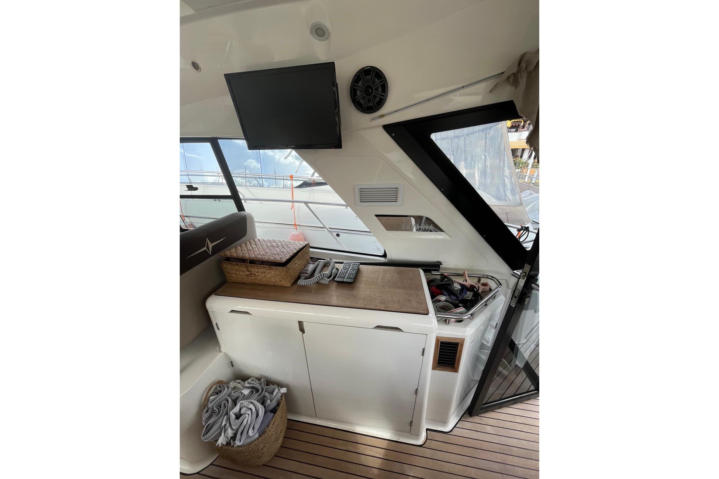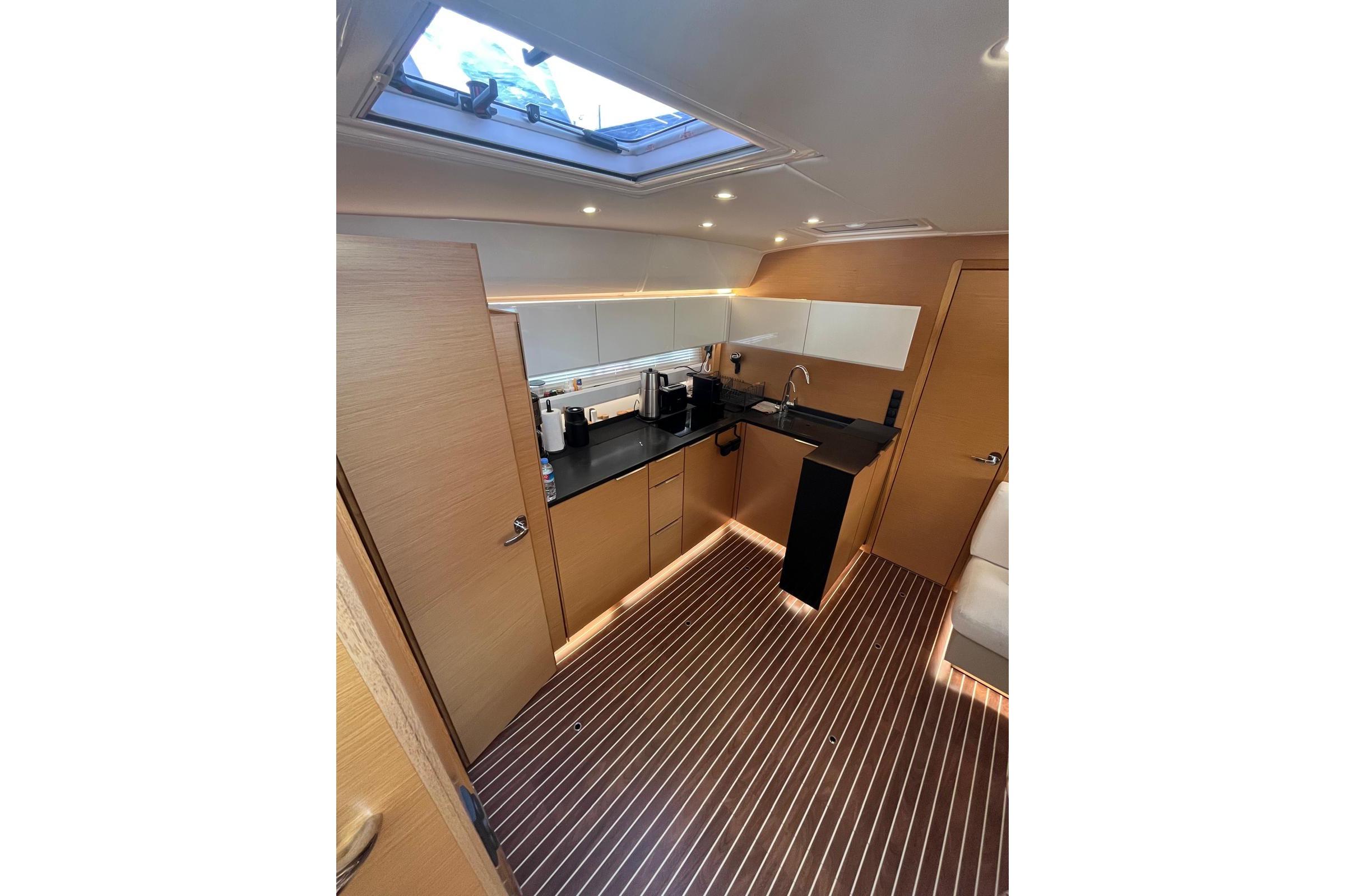 Cabins: 2 Berths: 2 × double beds Bathrooms / WC: 2 TV: 2 Sound System: Fusion Air Conditioning: 3 × Webasto Convertible Sofa Convertible Table / Berth Hot Water SystemGALLEY