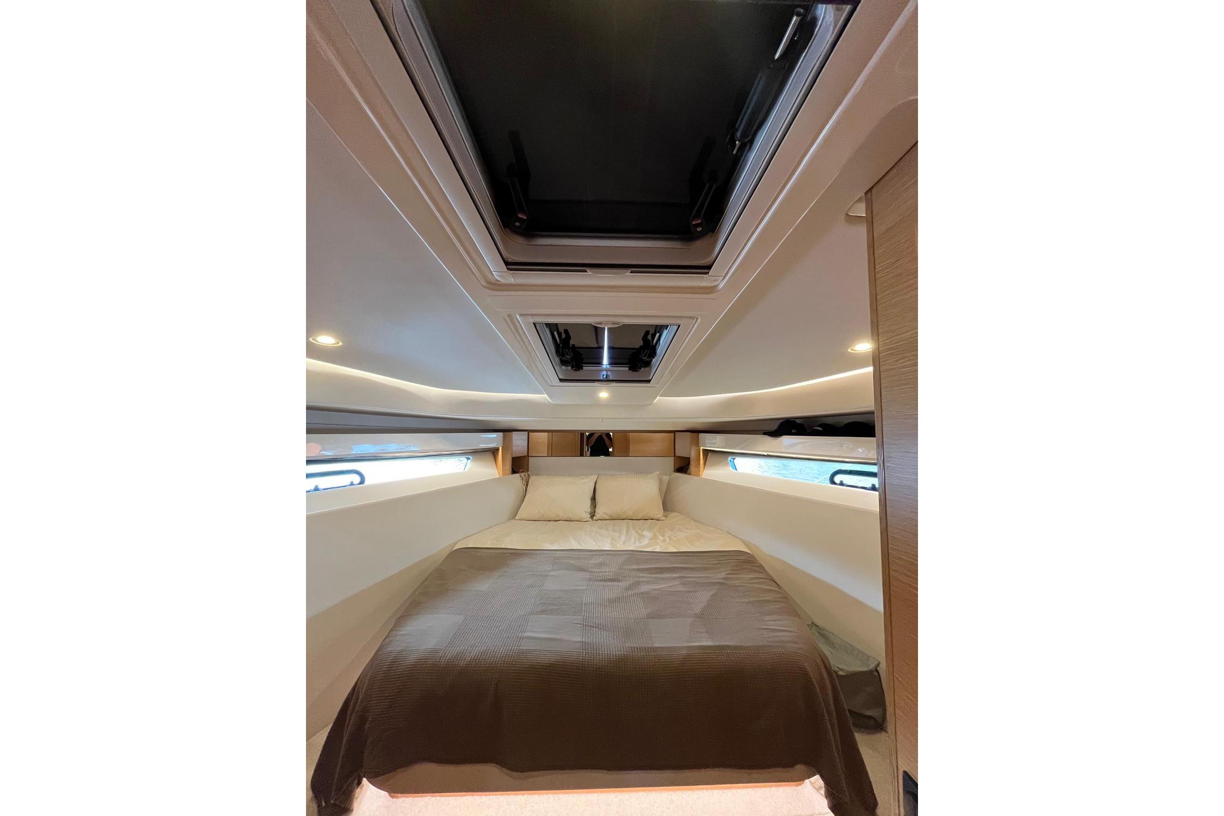 Engines: 2 × Volvo Penta 400 HP Diesel Engine Hours: 635 h Drive Type: Stern Drive Cruising Speed: 25 knots Maximum Speed: 35 knots Electrical System: 12V / 220V Generator: Fischer Panda 9 kW Bow Thruster Joystick Control System Battery Charger Inverter Shore Power CableACCOMMODATION