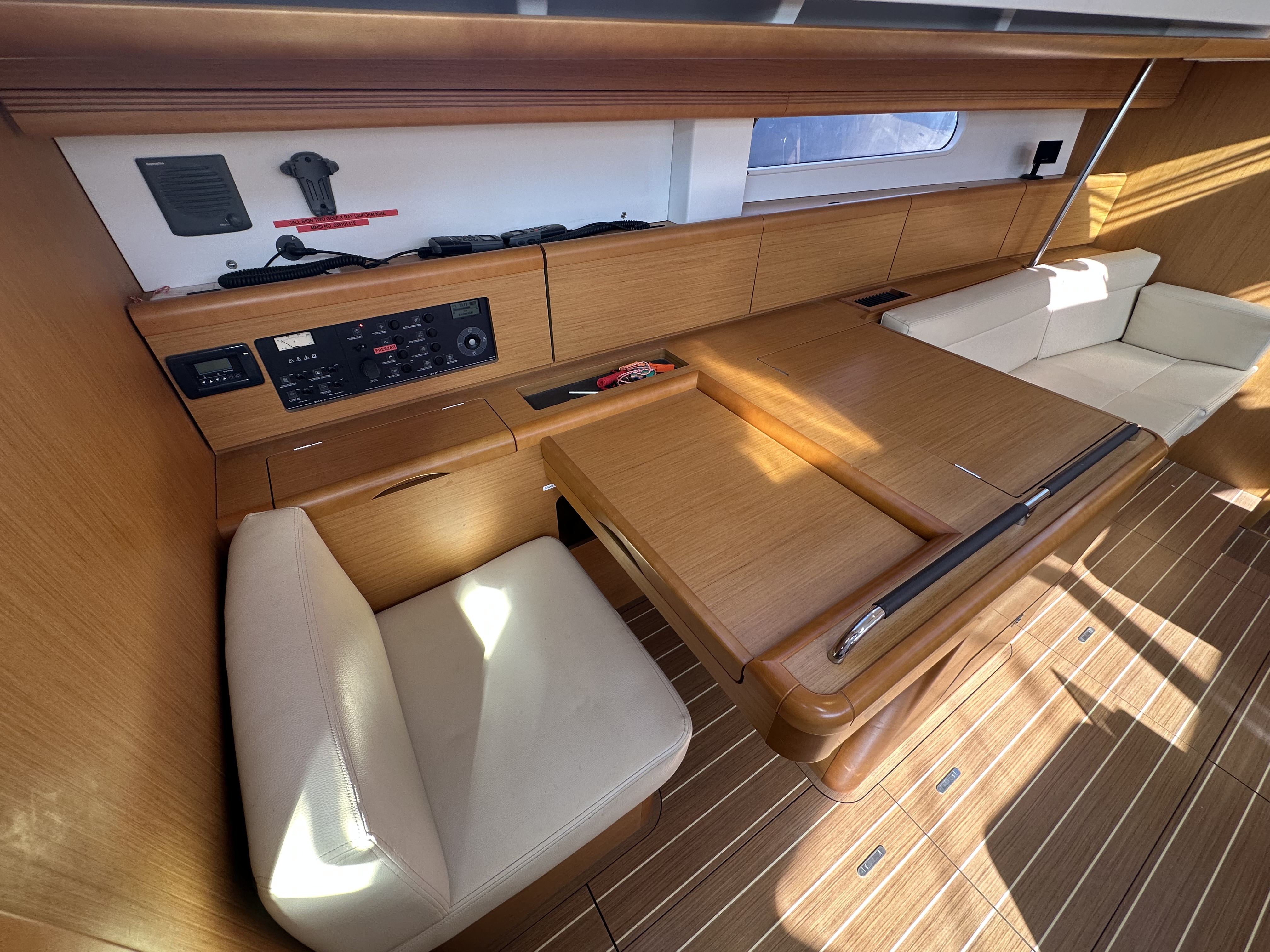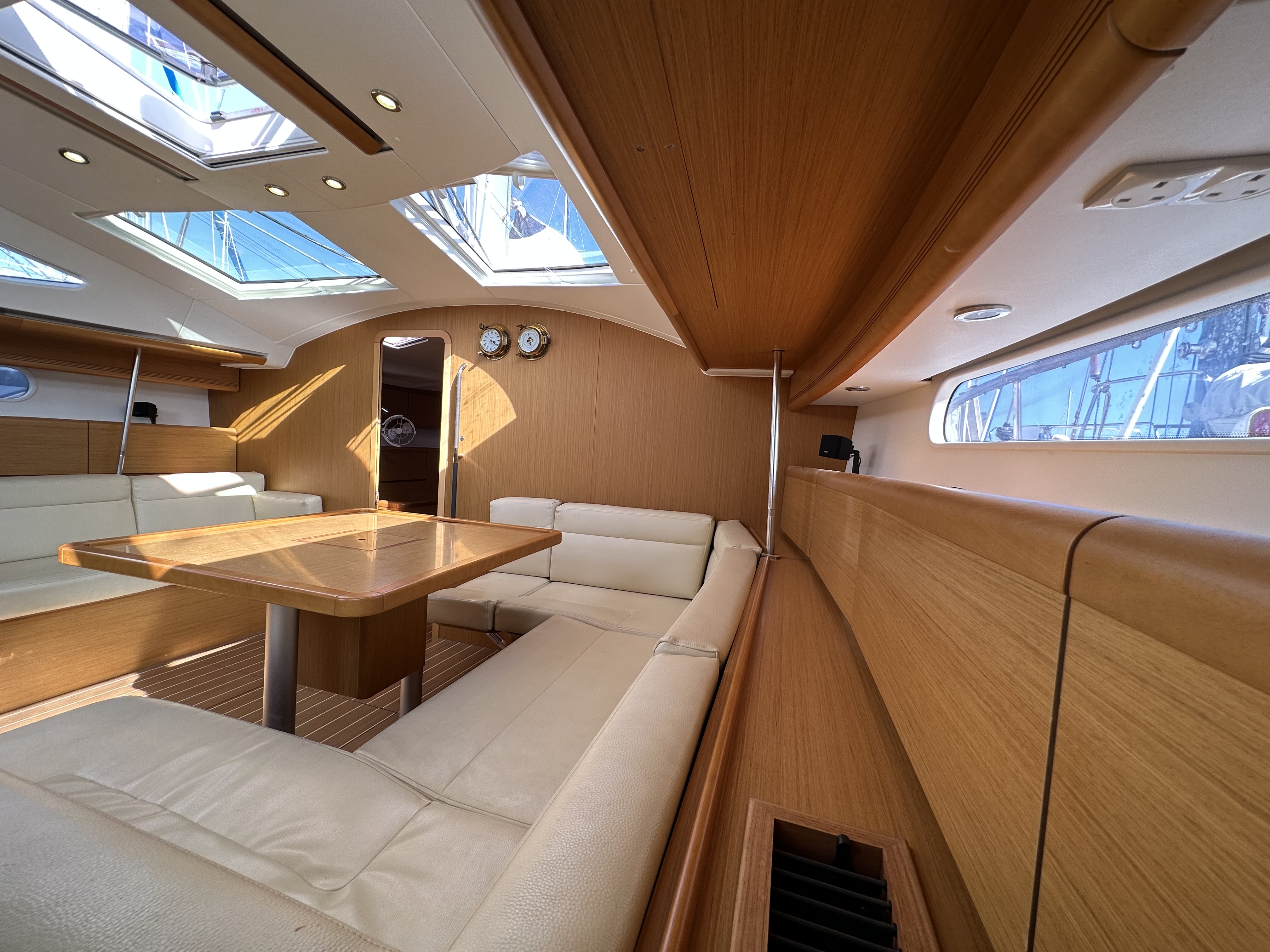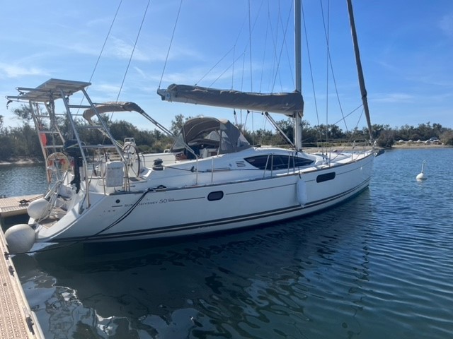 For sale Jeanneau Sun Odyssey 50 DS with reversible air conditioning, recent sails, 2 X 150W solar panels on gantry from 2018, bowthruster with dedicated batteries, batteries replaced in 2023, Genset Fisher Panda 5000 from 2018, new autopilot system Raymarine from 2023, chartplotter from 2016